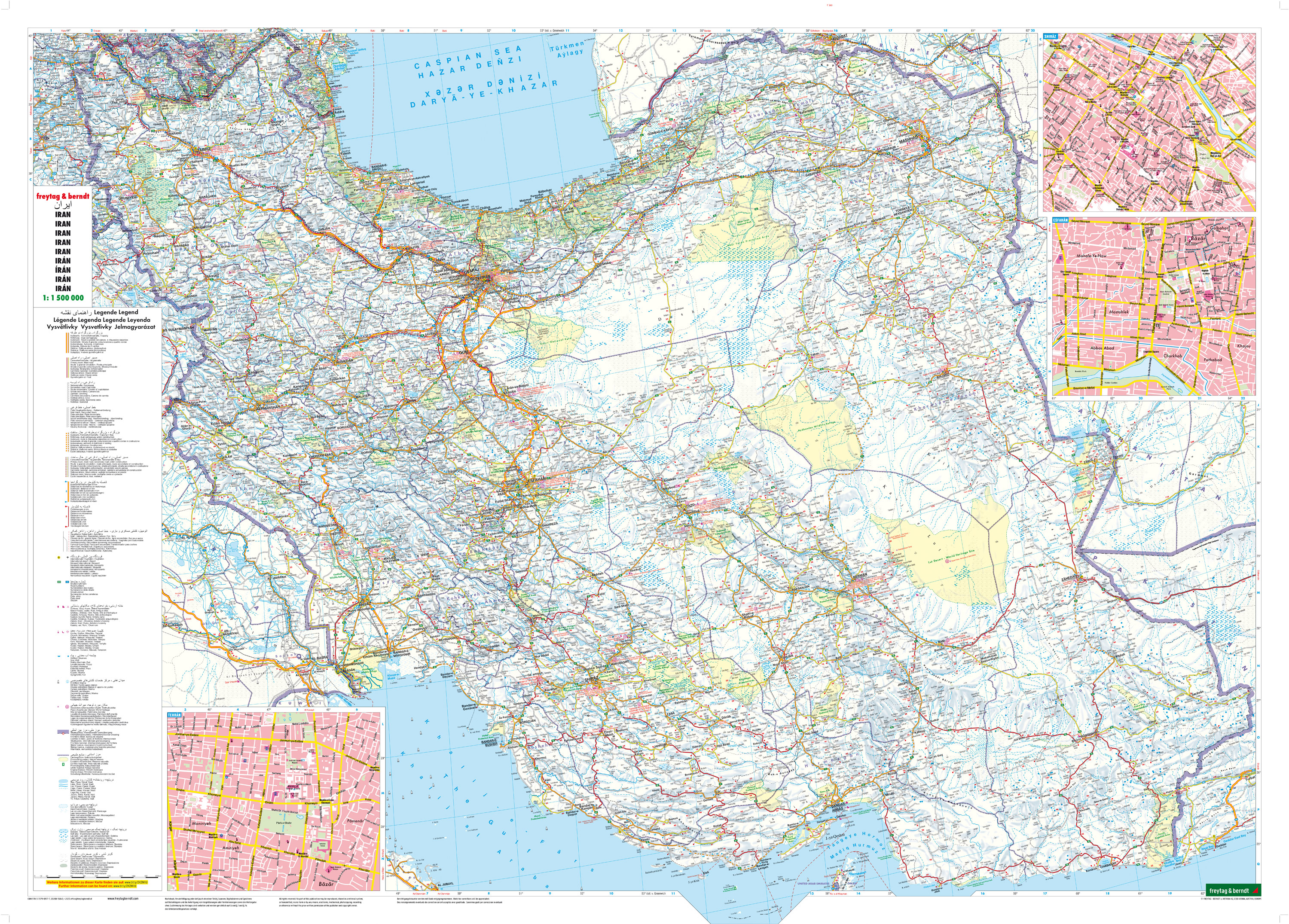 Details: Touristische Informationen, Citypläne von Shiraz, Esfahan und Teheran, Ortsregister.