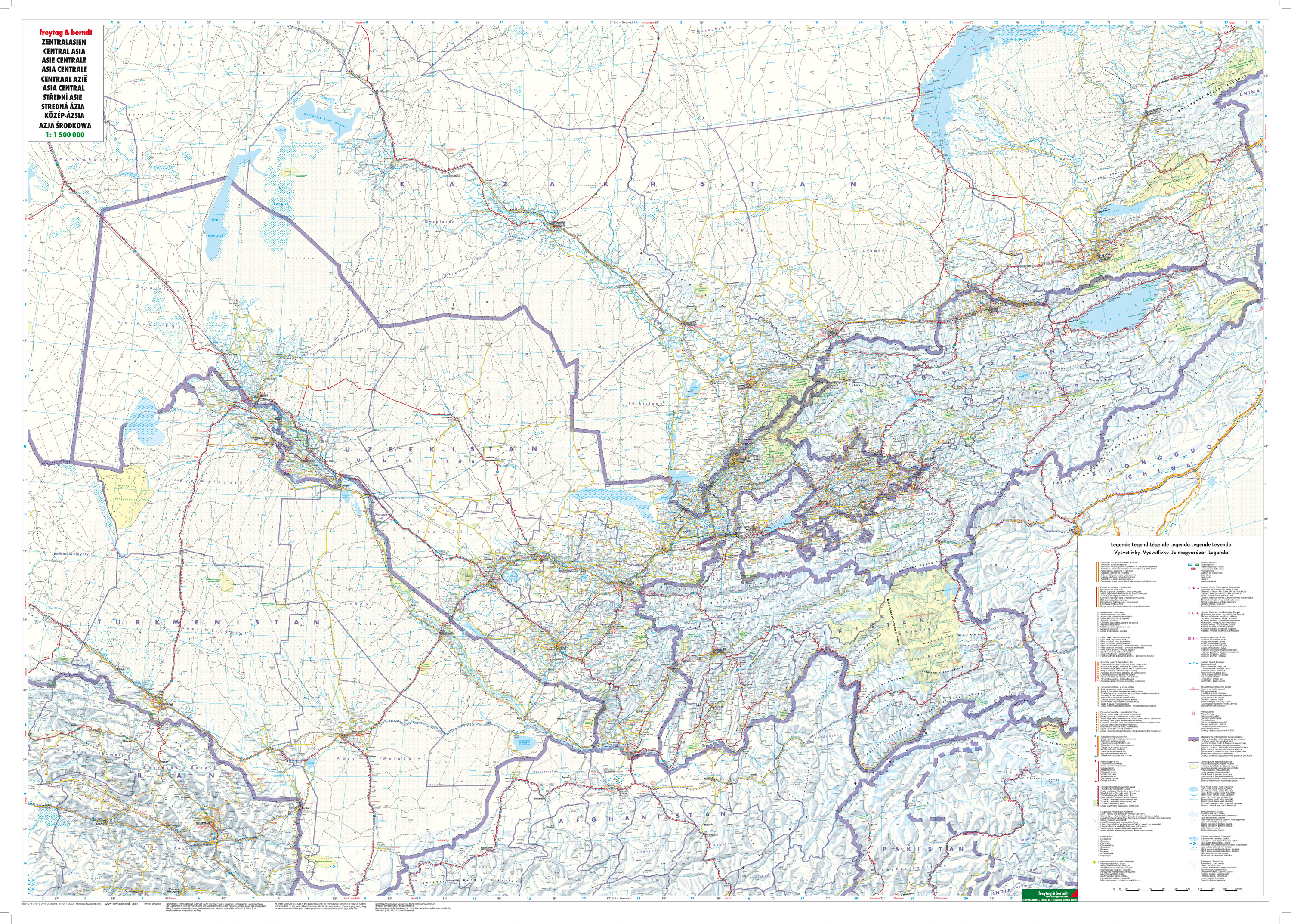 Zentralasien, Straßenkarte 1:1.500.000, freytag & berndt