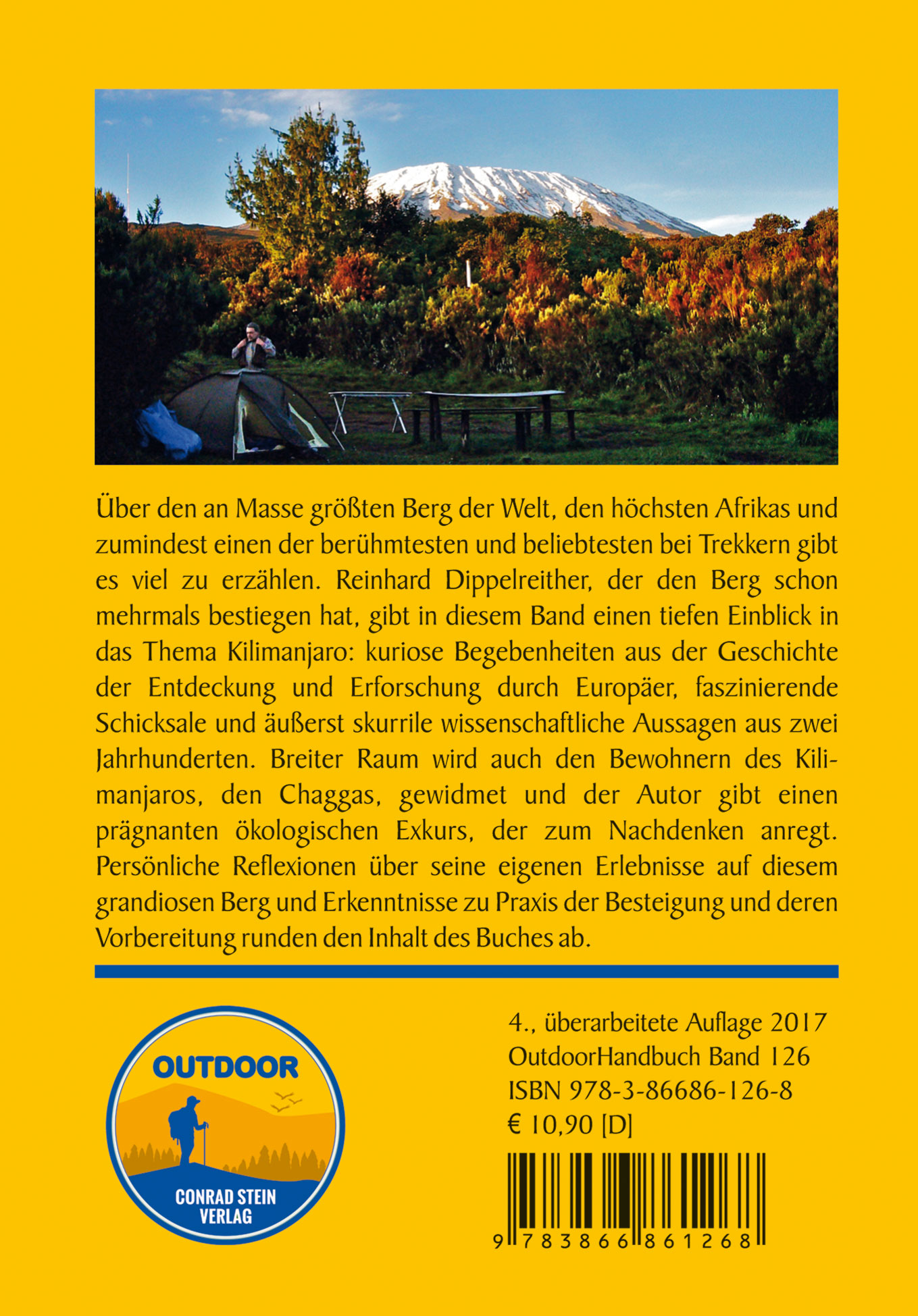 Wenn ein Berg mehrere Attribute der Superlative auf sich vereinen kann, dann gibt es viel über ihn zu erzählen. Aber über den an Masse größten Berg der Welt, den höchsten Afrikas und zumindest einen der berühmtesten und beliebtesten bei Trekkern gibt es noch viel mehr zu erzählen, als jemand glauben möchte. Der Kilimanjaro ist ein unerschöpfliches Fass voll Geschichte und Geschichten, und Reinhard Dippelreither, der den Berg schon mehrmals bestiegen hat, lässt uns im vorliegenden Band einen tiefen Griff in sein Schatzkästlein zum Thema Kilimanjaro tun: kuriose Begebenheiten aus der Geschichte der Entdeckung und Erforschung durch Europäer, faszinierende Schicksale, die mit dem Berg verbunden sind und äußerst skurrile wissenschaftliche Meinungen/Aussagen/Theorien aus zwei Jahrhunderten. Breiter Raum wird auch den Bewohnern des Kilimanjaros, den Chaggas, gewidmet. Ohne deren tatkräftige Unterstützung und Hilfe wäre die Erforschung dieses Berges nicht so unkompliziert verlaufen und auch die gegenwärtige Besteigung nicht so komfortabel möglich. Ein prägnanter ökologischer Exkurs regt nicht nur zum Nachdenken an, er offenbart erst so richtig die Größe dieses Berges. Eine Vorstellung von Sagen und Legenden zum Kilimanjaro der rundum ansässigen Völker sowie persönliche Reflexionen über Erlebnisse des Autors auf diesem grandiosen Berg runden den Inhalt des Buches ab. Der Band enthält nicht nur eine Reihe interessanter und aufregender Hintergrundinformationen, der Autor stellt auch immer wieder einen Bezug zur Praxis der Besteigung (und deren Vorbereitung) her. Auf diese Art wird dem Wanderer ein tiefer Einblick in die Mystik des Berges und die Eigen- und Besonderheiten von Tour Operators vor Ort, Führern und Trägern ermöglicht. Diese Fundgrube ergänzt den oben angesprochenen "Outdoor-Band" aufs Allerbeste und stellt mit diesem gemeinsam ein Bergführer-Kompendium dar, welches weit über die handelsüblichen Standards hinausreicht.