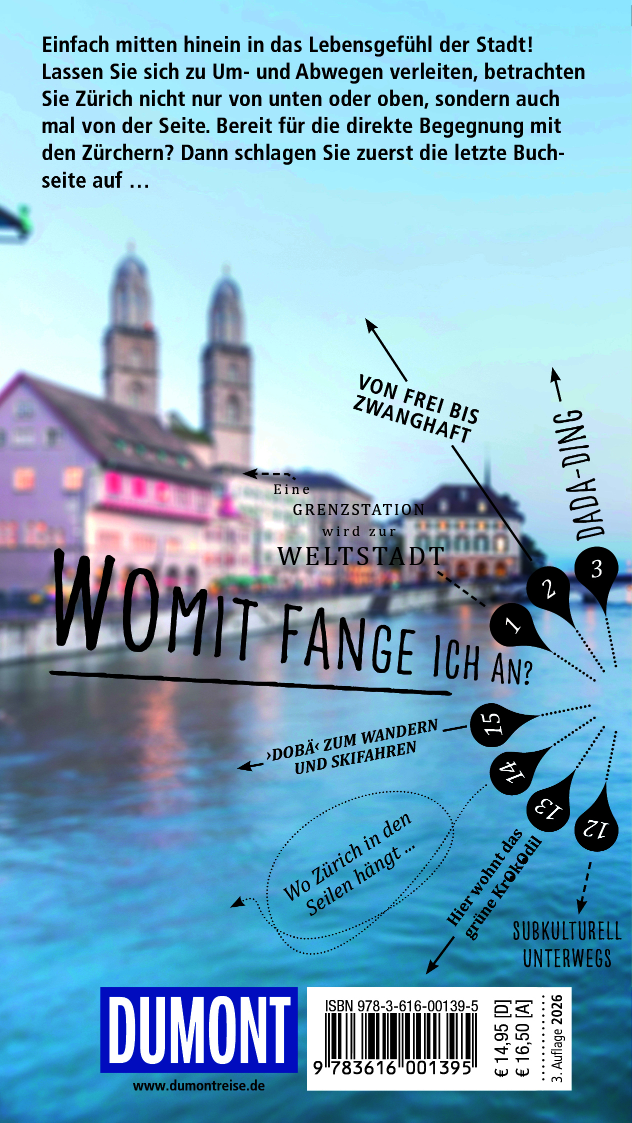 Mit den 15 »Direktkapiteln« des Reiseführers von Gabriele Schwieder können Sie sich zwanglos unter die fleißigen und geschäftstüchtigen Zürcher und Zürcherinnen mischen, direkt in das Stadtleben eintauchen und die Highlights und Hotspots kennenlernen: Lindenhof und Grossmünster, das legendäre Cabaret Voltaire und das »Dörfli«, Paradeplatz und Kunsthaus, Strandbäder und den Szenekiez der Langstrasse.