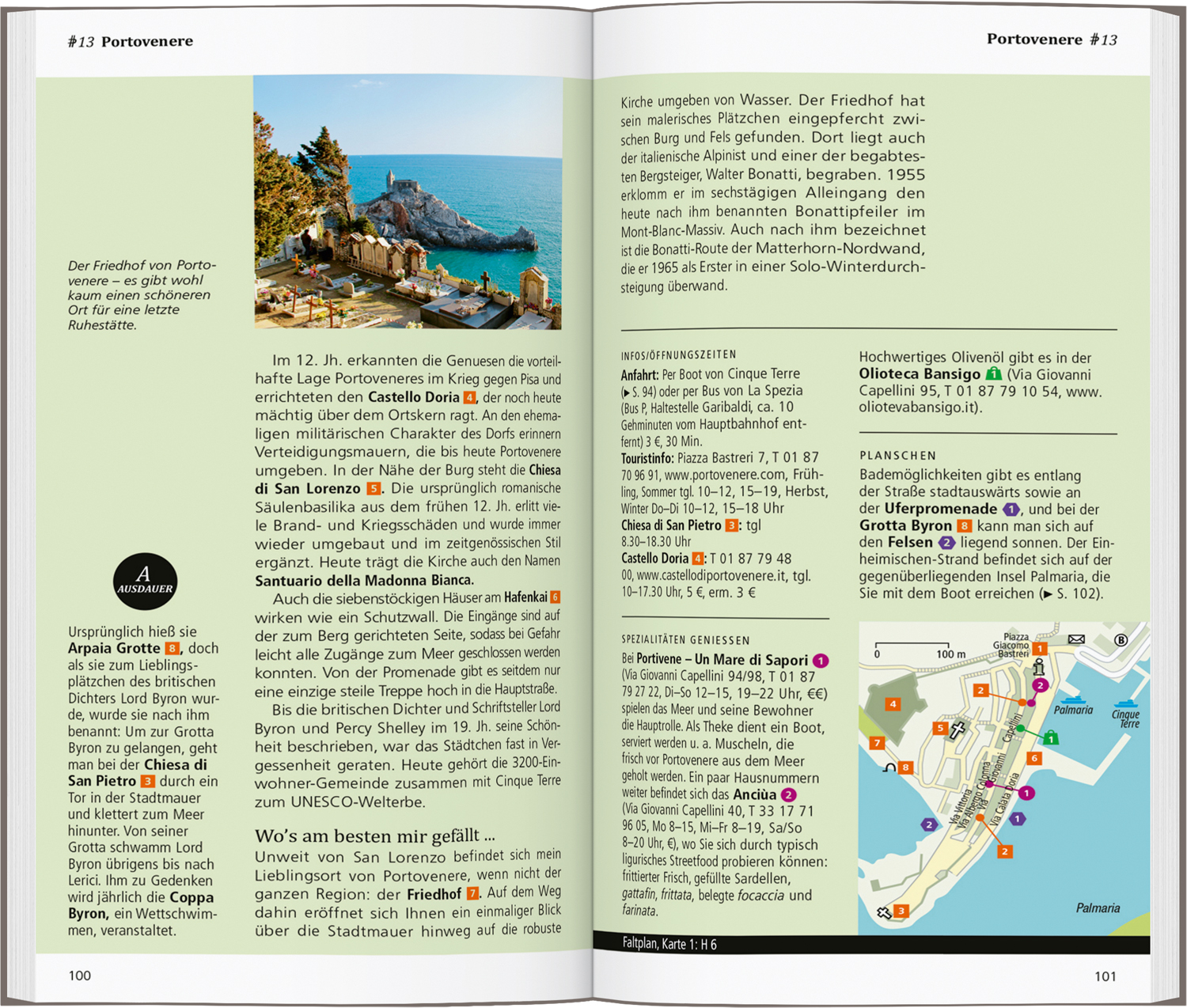 Mit den Übersichtskarten, genauen Stadtplänen und dem separaten großen Faltplan können Sie nach Lust und Laune die Cinque Terre erkunden.