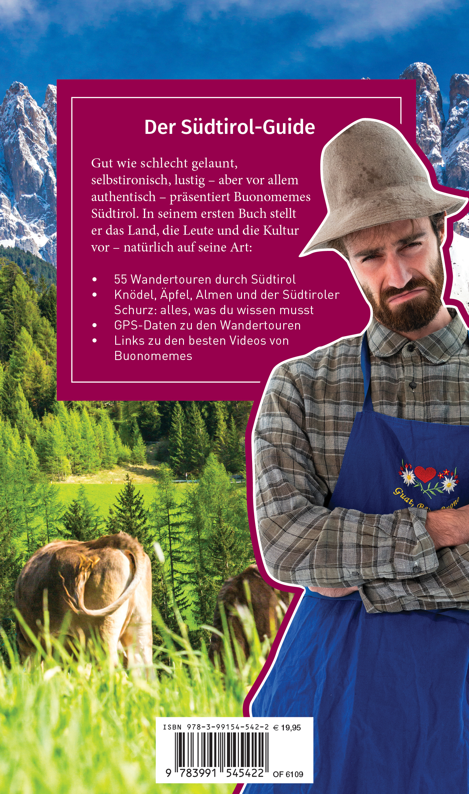 EIN AUTHENTISCHER SÜDTIROL-GUIDE: Mit diesem Buch stellt Buonomemes gemeinsam mit KOMPASS seine Heimat vor. Was macht Südtirol wirklich aus? 55 Wanderungen zu absoluten Südtirol-Highlights werden in dem Titel mit kulturellen Themen vermischt. Immer mit dabei sind die Charaktere von Buonomemes. Sie erklären den Südtiroler Speck, den Apfelanbau, die Bauernschürze und andere typische Merkmale dieses bezaubernden Landes im Herzen der Alpen.