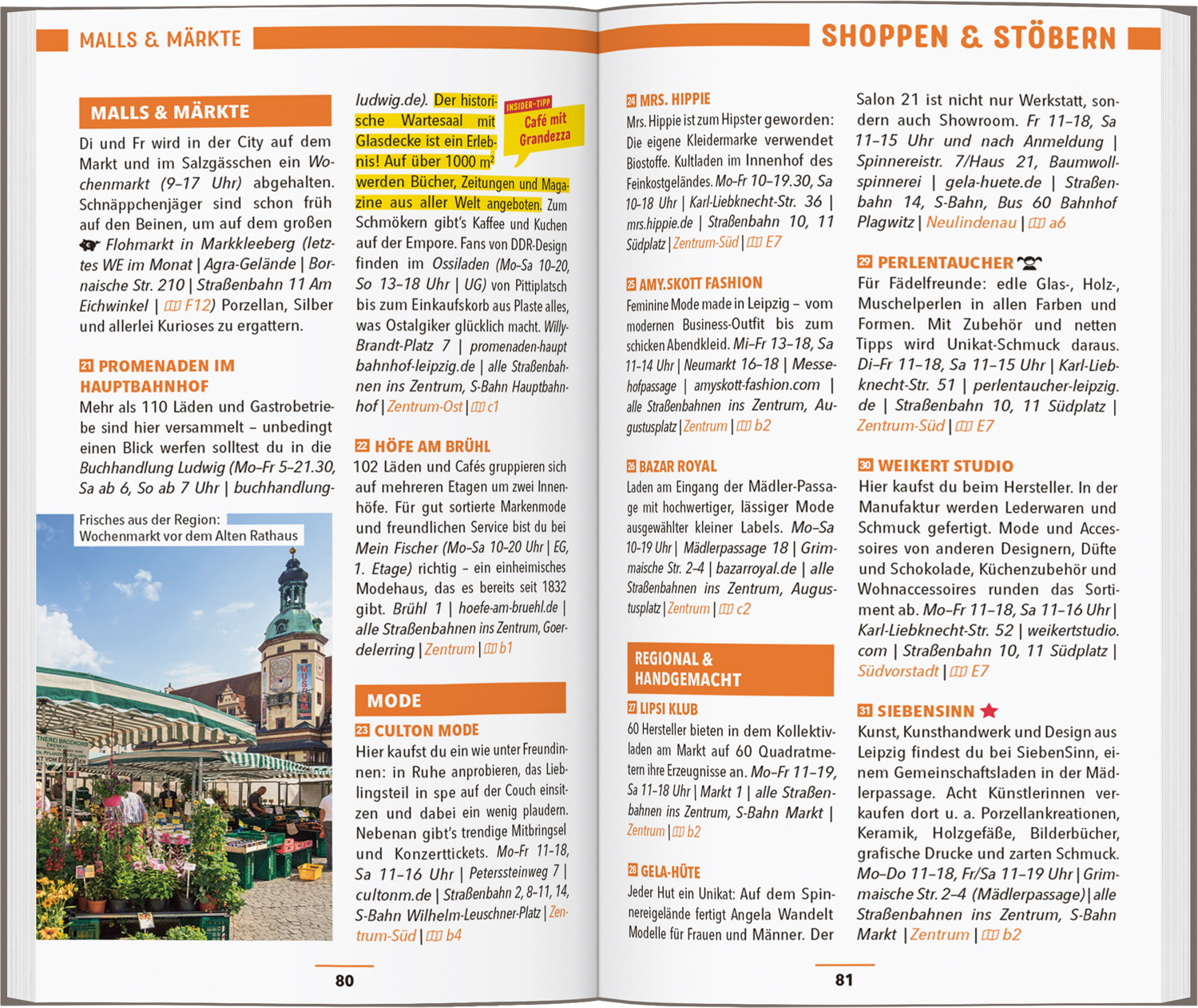 Paddle durch den Großstadtdschungel vorbei an Fabriken und Villen, skate am Nachmittag um den "Cossi" und atme abends Weltstadtflair beim Shoppen in der Mädlerpassage. Mach ein Pärchenfoto auf der romantisch geschwungenen Holzbrücke am See im Johannapark oder verbringe den ganzen Tag mit deinen Kindern im "Zoo der Zukunft", der fast komplett ohne Gitterstäbe auskommt. Ob pralles Großstadtleben oder entspanntes Bummeln: Wenn du Sachsens Trendstadt erkundest, ist der MARCO POLO Reiseführer Leipzig dein Begleiter.