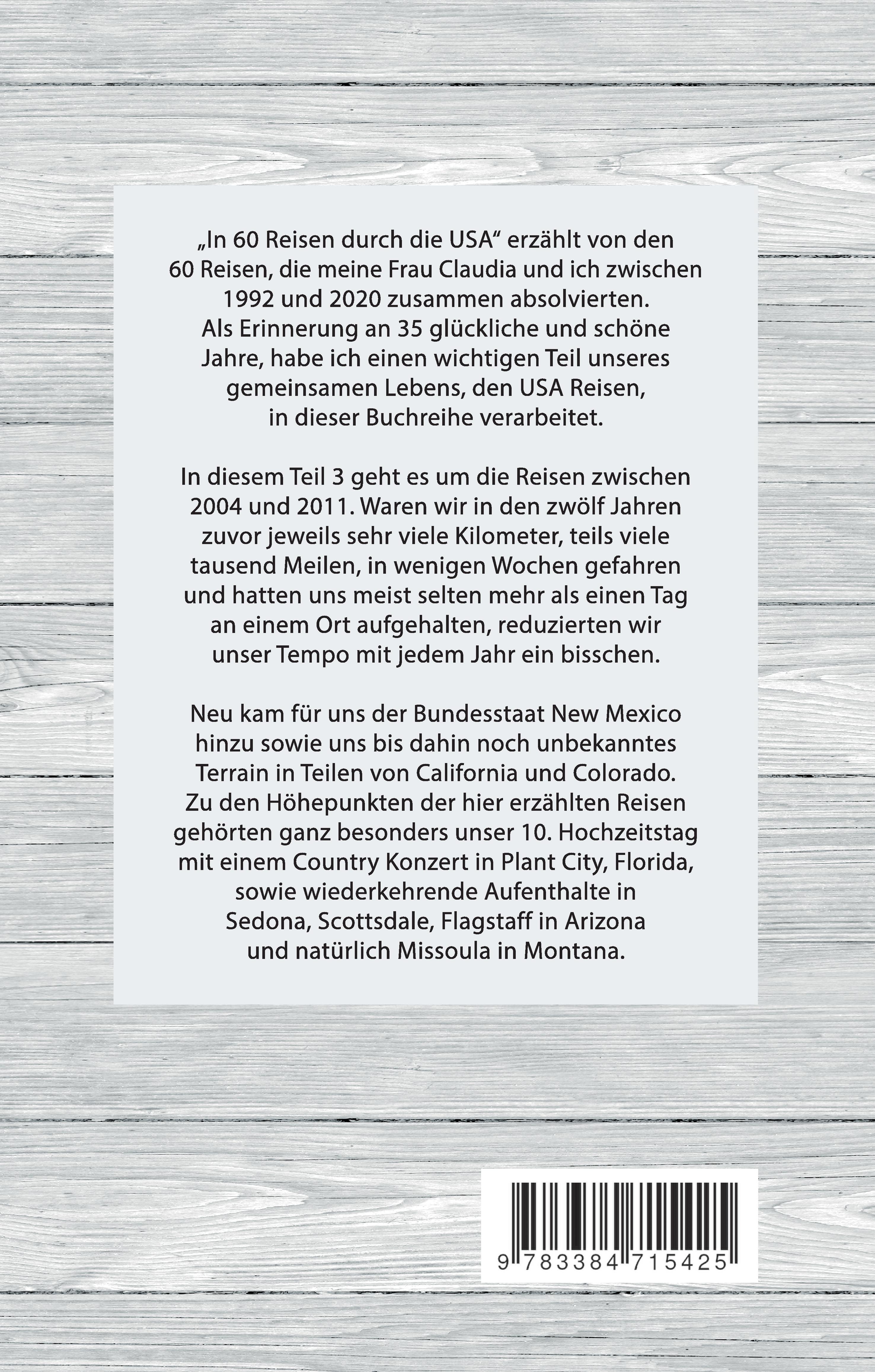 Das Buch erzählt von unseren Reiseerinnerungen an 60 Reisen durch die USA die ich mit der Liebe meines Lebens Claudia zwischen 1992 und 2020 erleben durfte. Die Buchreihe entstand kurz vor dem Krebstod meiner Frau im Jahr 2022 und erzählt im nun 3. Band aus den Jahren 2003-2011. Es geht um Plätze, Orte, Menschen, Geschichte, Ereignisse und Erlebnisse während dieser Reisen.