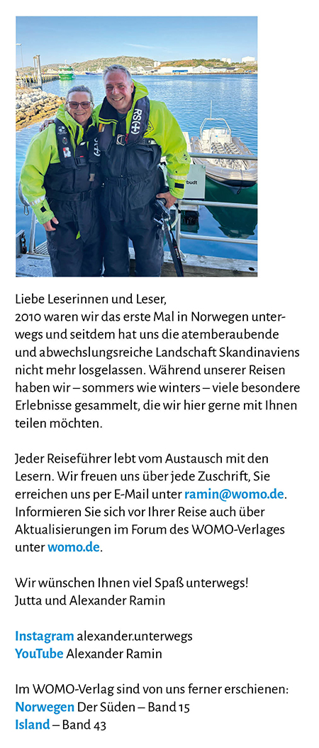 EinladungWillkommen in der endlosen Weite im Norden des europäischenKontinents. Arktische Tundra, spektakuläre Berge und Seen, vieleInseln inmitten des glasklaren Nordmeeres. Dazu hellweißeStrände vor majestätischen Bergen und historische Fischerdörfermit den so bekannten Stelzenhäusern. Kommen Sie mit uns bishoch in den Norden, dabei muss es nicht immer das Nordkap sein,denn wir zeigen Ihnen die ganze Schönheit der norwegischenArktis.Uns begeistert bis heute die endlose Weite mit den so unterschiedlichenGesichtern. Neben den bekannten Zielen, wie demNordkap oder den Lofoten, haben wir die unbekannteren Regionenzu schätzen gelernt. Die Einsamkeit der Vesterålen, dieVielseitigkeit Senjas und die karibisch anmutenden Strände vonKvaløya sind nur ein paar Beispiele unserer Lieblingsinseln. Westlichund östlich des Nordkaps finden wir einsame Halbinseln inder Arktis. Tief im Herzen bleibt der Gesamteindruck einer Region,an der man sich nicht nur einmal am Ende der Welt fühlt unddie Kraft und Weite der Natur ganz intensiv spürt. Aber auch diegroßen, weltoffenen Städte wie Trondheim oder Tromsø begeisterndurch Vielseitigkeit und einer tollen Mischung auch Historieund Moderne. Auch die kulturelle Bedeutung des Nordens mitdem indigenen Volk der Sámi, das hier seit Jahrtausenden vonJagd und Fischfang lebt, hat uns tief beeindruckt.Folgen Sie uns zu einsamen Nebenstrecken, auf denen eine stundenlangeFahrt im Wohnmobil zu einer kurzweiligen Panorama-Tour voller unvergesslicher Eindrücke wird.Viel Freude wünschen