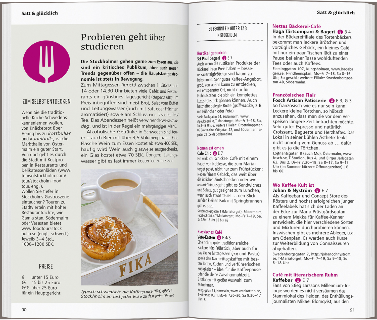 In eigenen Kapiteln erfahren Sie, wo es sich in fremden Betten gut schläft, wo Sie glücklich satt werden, wohin die Stockholmer zum Stöbern und Entdecken gehen und wohin es sie zieht, wenn die Nacht beginnt.