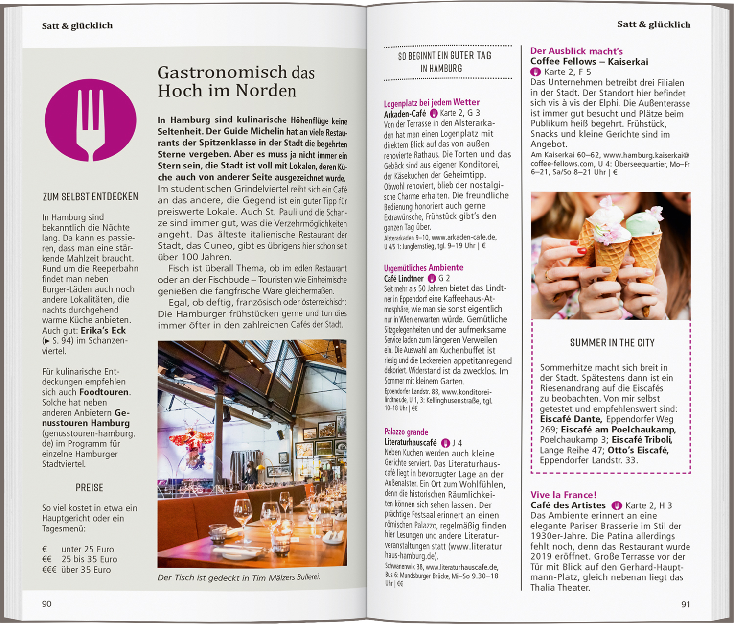 In eigenen Kapiteln erfahren Sie, wo es sich in fremden Betten gut schläft, wo Sie glücklich satt werden, wohin die Hamburger zum Stöbern und Entdecken gehen und wohin es sie zieht, wenn die Nacht beginnt.