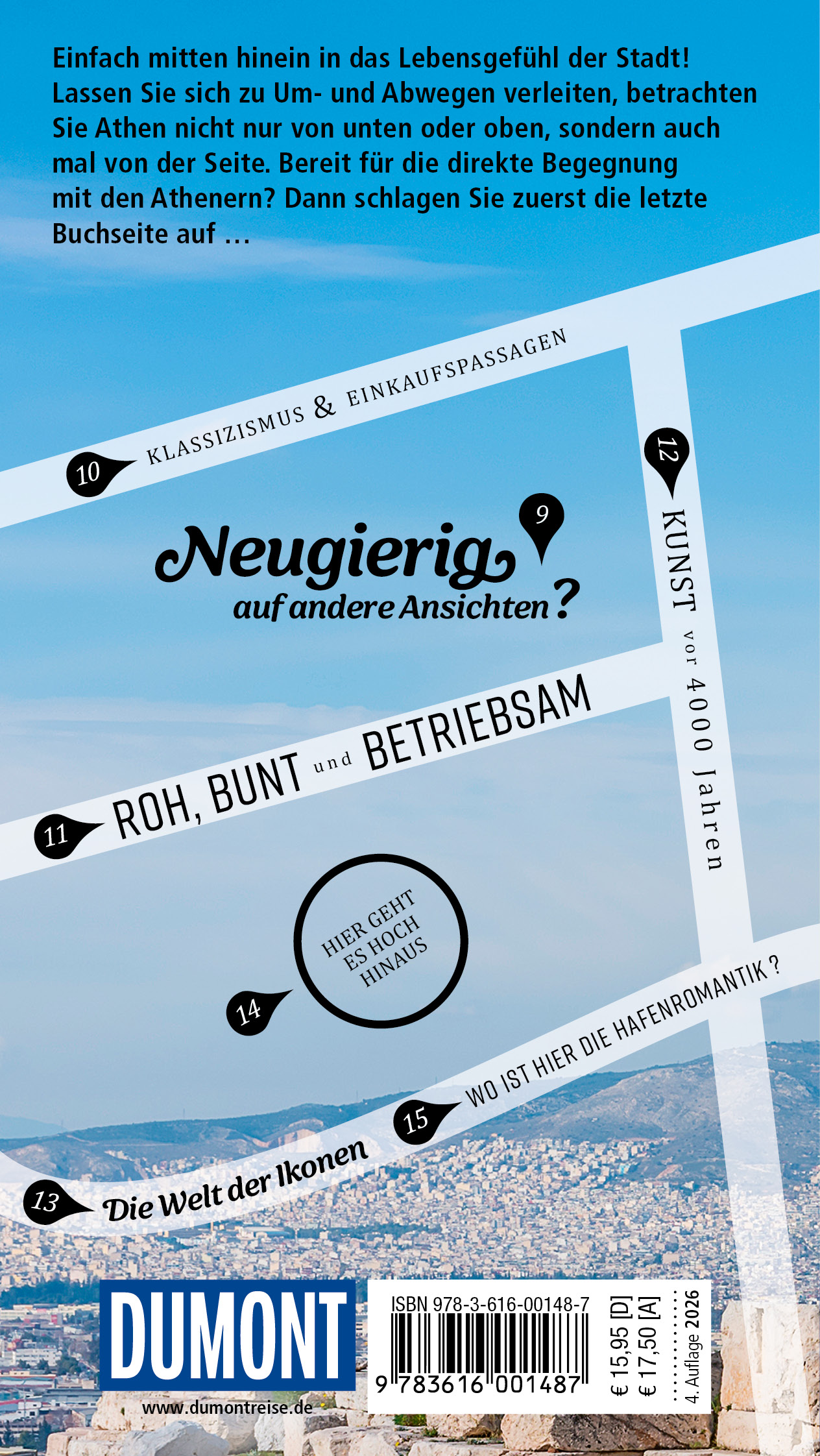 Mit den 15 »Direkt- Kapiteln« des Reiseführers von Klaus Bötig und Elisa Hübel können Sie sich zwanglos unter die Athener mischen, direkt in das Stadtleben eintauchen und die Highlights und Hotspots kennenlernen: