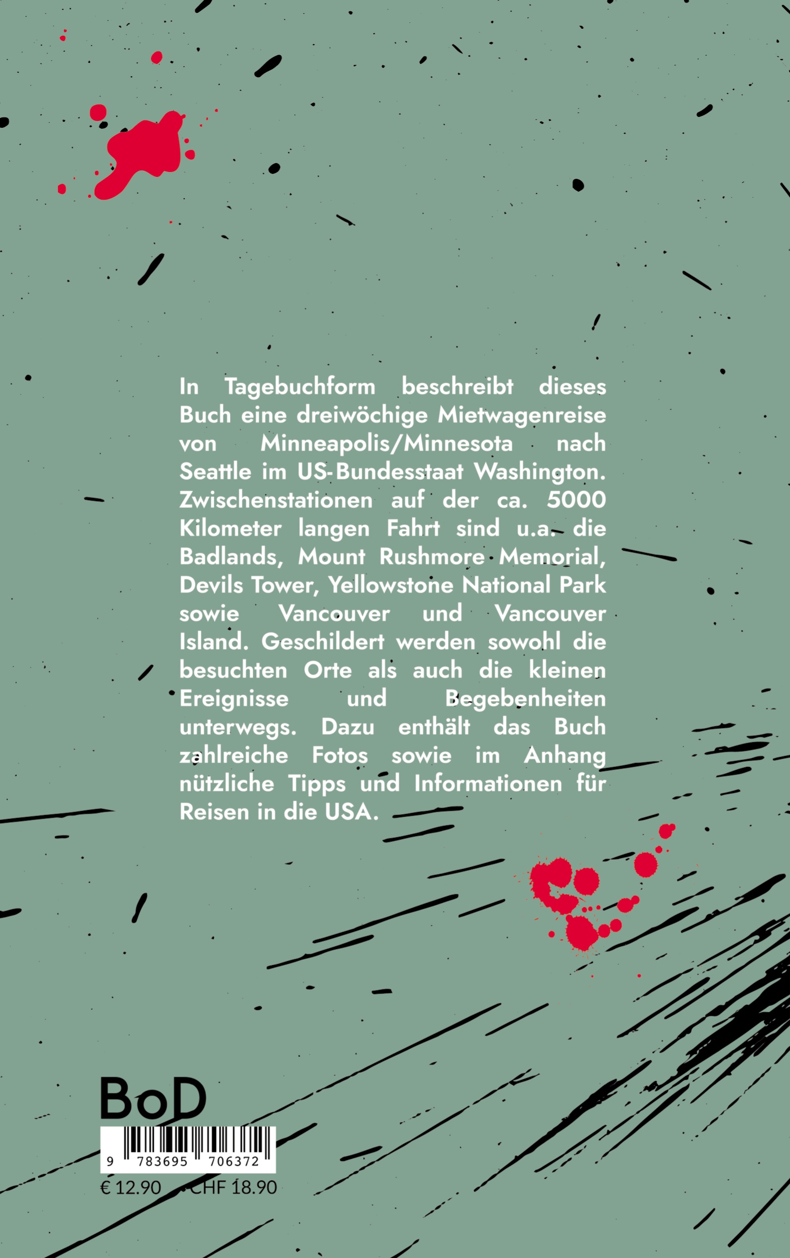 In Tagebuchform beschreibt das Buch eine dreiwöchige Mietwagenreise von Minneapolis/Minnesota nach Seattle im US-Bundesstaat Washington.