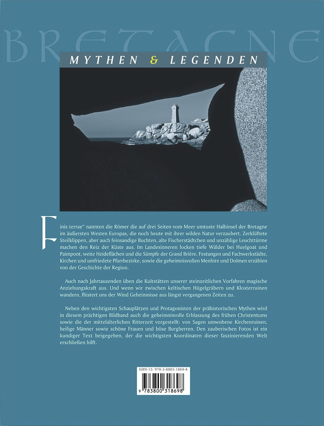 | Schlagworte | Belle-île • Bildband • Bretagne • Bretagne; Bildband • Bretagne, Geschichte; Geistes-/Kultur-Geschichte • Bretagne, Geschichte; Geitses-/Kultur-Geschichte • Brignogan-Plage • Camaret • Combourg • Comper • Côte de Goello • Côte Sauvage • Dinan • Eckmühl • Forêt de Paimpont • Guimiliau • HC/Reisen/Bildbände/Europa • Keriolet • Legenden • Locronan • Mont Saint-Michel • Monts d'Arrée • Mystik • Mythen • Pleyben • Ploumanac'h • Pointe de Penhir • Pointe du Raz • Pointe Saint-Mathieu • Pontusval • Reisebildband • Saint-Malo • Tréguier |
