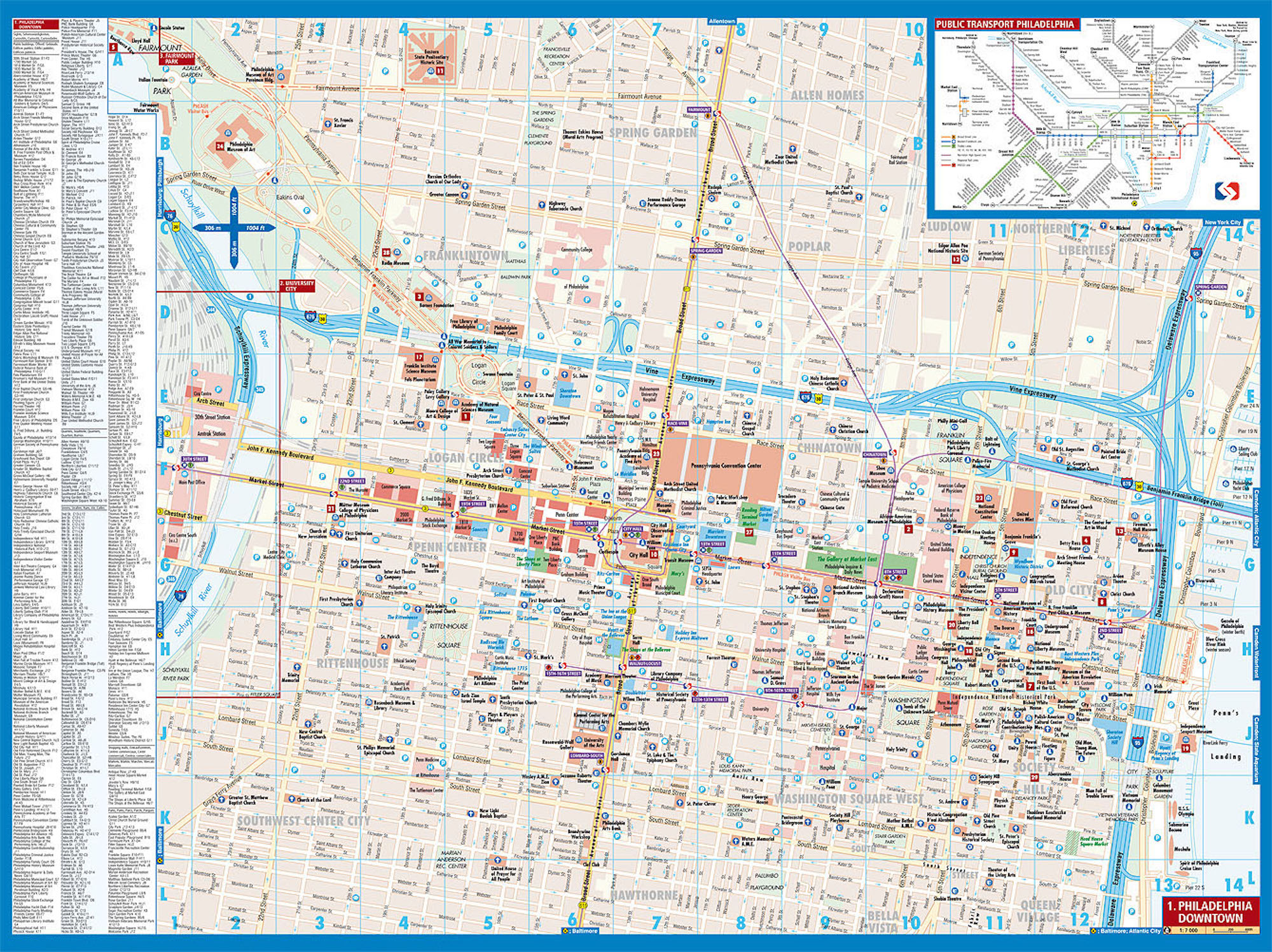 Unsere folienbeschichtete und gefaltete Borch Map von Philadelphia in der 10. Auflage beinhaltet: Philadelphia Stadtzentrum 1:7 000, Philadelphia & Umgebung 1:125 000, University City 1:12 000, Fairmount Park 1:15 000, das öffentliche Verkehrsnetz und eine administrative Übersichtskarte der USA mit Zeitzonen. Borch Maps beinhalten eine Vielzahl interessanter und nützlicher Informationen wie Top Sights, Museen, Monumente, Märkte und viele weitere Sehenswürdigkeiten, aber auch Statistiken, Umrechnungstabellen, Klimadiagramme und viele detailreiche Übersichtskarten, die eine Borch Map zu einem exzellenten Reisebegleiter machen. Kartenformat (offen): 660 x 494 mm.