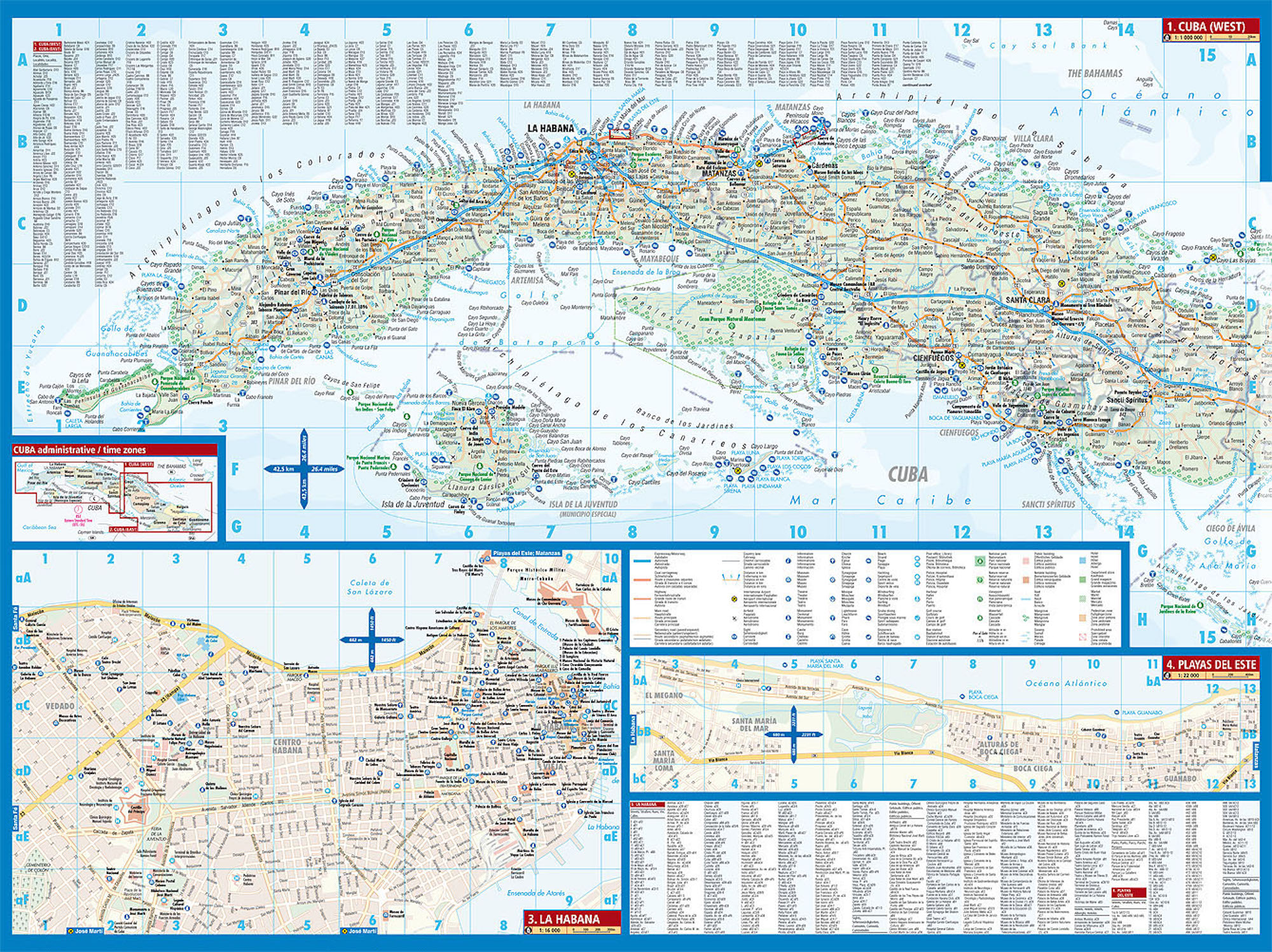 Unsere folienbeschichtete und gefaltete Borch Map von Kuba in der 8. Auflage beinhaltet: Kuba West 1:1 000 000, Kuba Ost 1:1 000 000, Havana 1:16 000, Varadero 1:25 000, Playas del Este 1:22 000, Santiago de Cuba 1:16 000 und eine administrative Übersichtskarte von Kuba mit Zeitzonen. Borch Maps beinhalten eine Vielzahl interessanter und nützlicher Informationen, detailreiche und benutzerfreundliche Kartographie, aber auch Statistiken, Umrechnungstabellen, Klimadiagramme und zahlreiche Übersichtskarten, die eine Borch Map zu einem exzellenten Reisebegleiter machen. Kartenformat (offen): 660 x 494 mm.