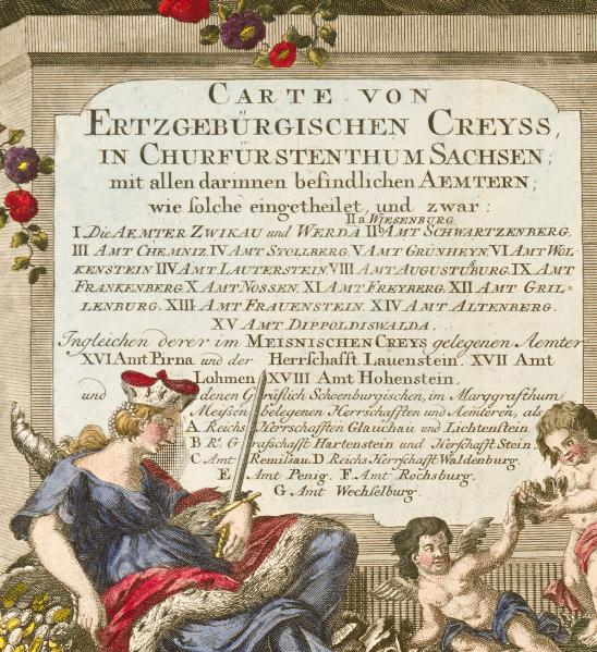 Historische Karte: Erzgebirgischer Kreis – Carte von Ertzgebürgischen Creysse in Churfurstenthum Sachssen mit allen derinnen befindlichen Aembtern und Herrschafften 1760 (Plano)