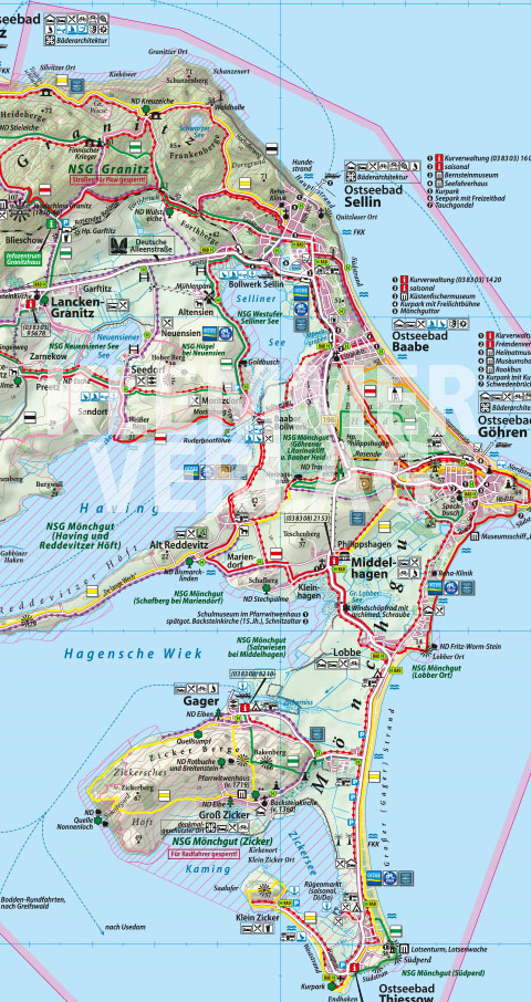 | Schlagworte | Bergen • Binz • Landkarte • Mecklenburg-Vorpommern • Nationalpark Jasmund • Ostsee • Ostseeküste • Radkarte • Rügen • Stralsund • Wanderkarte |