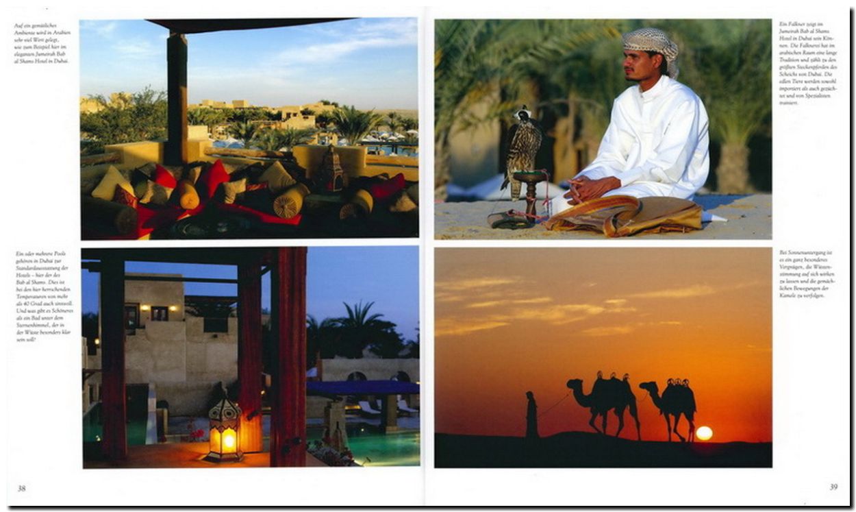 In die geheimnisvolle und märchenhafte Welt Arabiens mit ihren bunten Basaren, Beduinenzelten und Kamelen, aber auch in die moderne Welt himmelstrebender Hotels und Inselbauprojekte entführt die Reise in das Sultanat Oman und in die Vereinigten Arabischen Emirate. Mindestens ebenso fesselnd wie die gesellschaftlichen und kulturellen Kontraste sind die landschaftlichen. Denn die Natur hat diesem Gebiet nicht nur den legendären Weihrauchbaum und die Perlenbänke beschert, sondern auch bis zu 3000 Meter hohe Gebirge mit palmenbestandenen Wadis, schier grenzenlose Dünenwüsten und eine über 2000 Kilometer lange Küste mit unberührten Sandstränden und zahlreichen Tauchparadiesen.