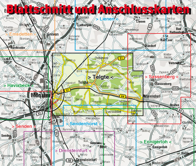 - Detailkarten von Telgte, Vadrup und Westbevern im Maßstab 1:12.500
