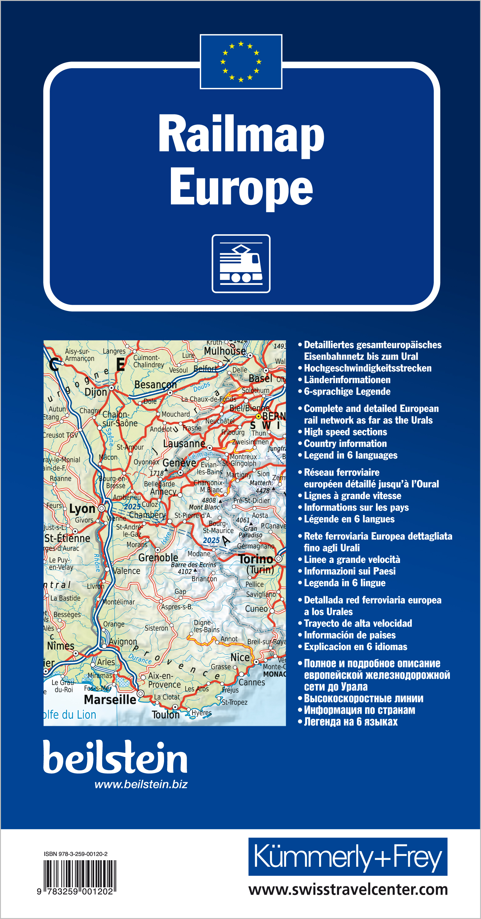 - DetailliertesgesamteuropäischesEisenbahnnetz bis zumUral- Hochgeschwindigkeits-strecken- Länderinformationen- 6-sprachige Legende