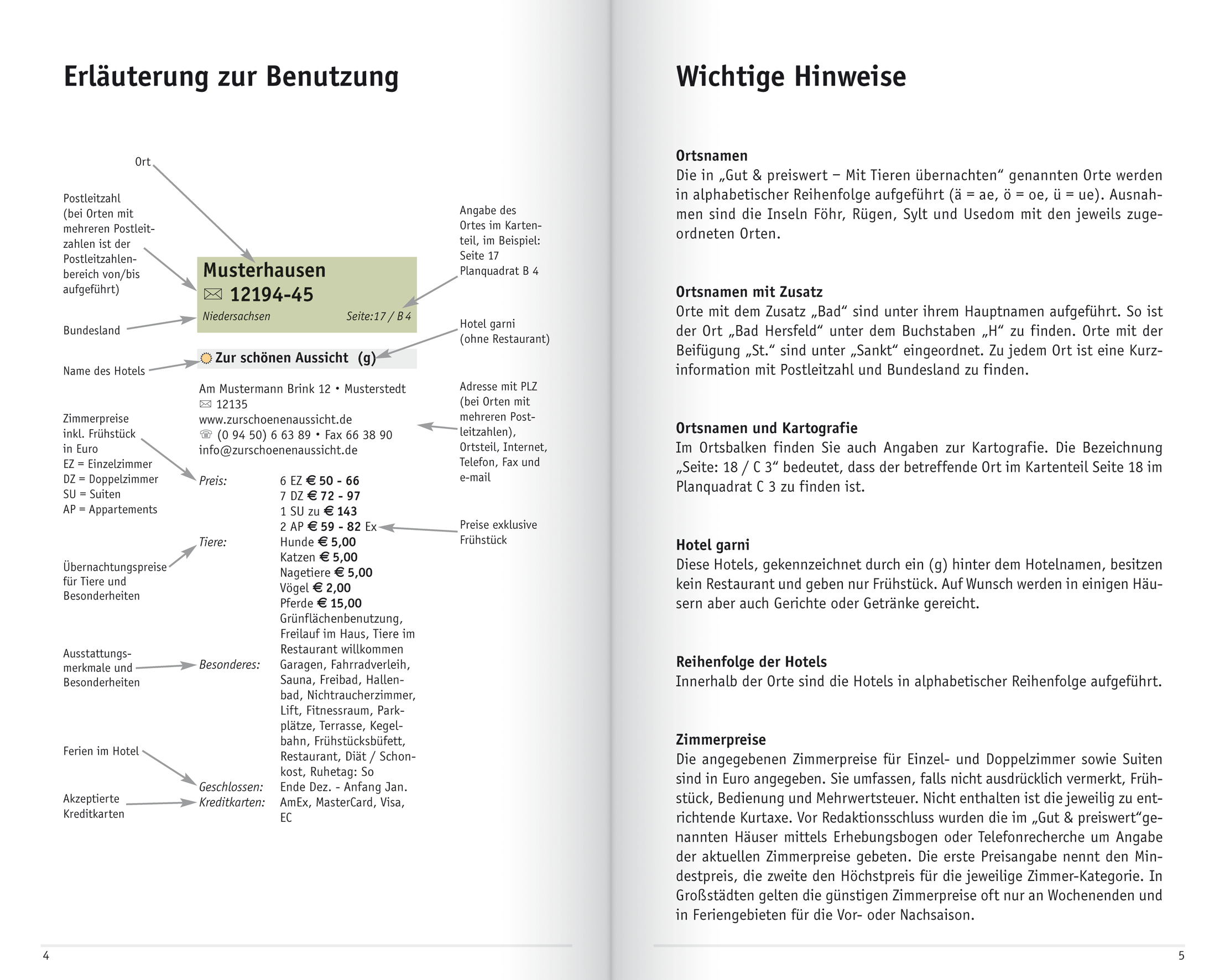 In vielen Hotels sind vierbeinige Gäste willkommen, viele sind sogar speziell auf sie eingerichtet. Dieser Hotelführer präsentiert tierfreundliche Häuser, in denen der "kleine Liebling" gern gesehen ist. Die über 2.500 Hotels und Gasthäuser, die hier gelistet sind, geben sich nicht nur tierlieb, sondern auch noch preisgünstig. Niemand braucht mehr auf seine "liebste" Begleitung im Urlaub zu verzichten. Inklusive Kartenteil, in dem die Orte aller Häuser farbig gekennzeichnet sind.