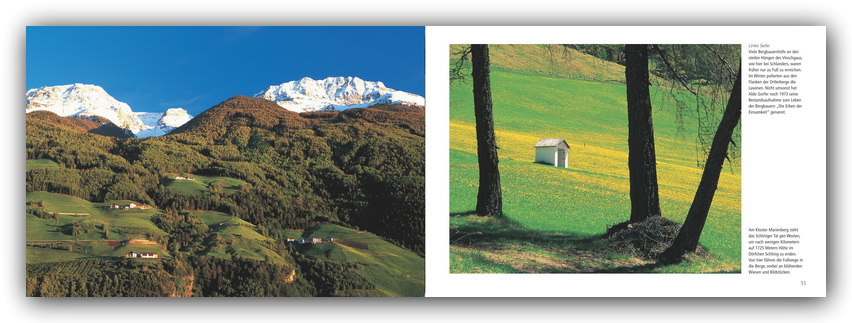 Südtirol, das uralte Durchzugsland zwischen Brenner und Salurn, Ortler und Drei Zinnen, ist ein kleines Paradies mit vielfältigen Landschaften. Gedeihen in der Region um Meran Palmen, Zypressen und Myrthen, haben sich an der Südseite des Alpenhauptkamms ausgedehnte Gletscherflächen erhalten. Zahlreiche brillante Fotografien zeigen schroffe Felswände und berühmte Gipfel, nicht nur in den Dolomiten, urwüchsige Bergdörfer, Städte wie Brixen und Bozen und vieles mehr.