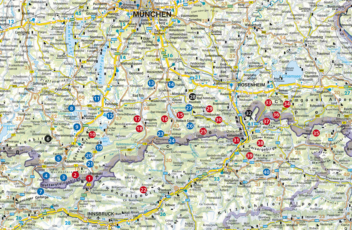 | Schlagworte | Alpenvorland • Ausflüge • Bad Wiessee • Bayerische Alpen • Bayerische Alpen; Wanderführer • Bayerischzell • Bayrischzell • Chiemgau • eckbauer • Eibsee • Einkehren • Garmisch • Garmisch-Partenkirchen • Genusstouren • GPS • Isarwinkel • Kaisergebirge • Kaisertal • Karwendel • Kochelsee • Langgries • leicht • Leitzachtal • Lenggries • Mangfallgebirge • Münchner Berge • Oberbayern • Osterseen • Rotwand • Schliersee • Spaziergänge • Staffelsee • Tegernsee • Tirol; Wanderführer • Walchensee • Wandern • Wetterstein • Wilder Kaiser |