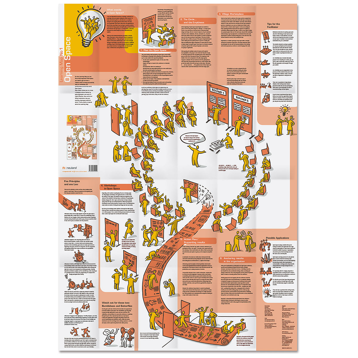 Sie wollten schon immer wissen, was Open Space nun eigentlich genau ist, und sind auf der Suche nach einem umfassenden Einblick. Sie kennen Open Space ansatzweise, möchten aber einige Punkte nochmals vertiefen? Genau für diesen Zweck haben wir die Lernlandkarte entwickelt. Sie liefert auf den Punkt mit wenigen Worten und treffenden Illustrationen alles Wichtige, um Sie mit einem Verfahren bekannt zu machen, das auf der ganzen Welt genutzt wird. Mit Open Space schaffen Sie eine Dialogkultur, die direkt auf den Bedarf Ihrer Organisation zugeschnitten ist.