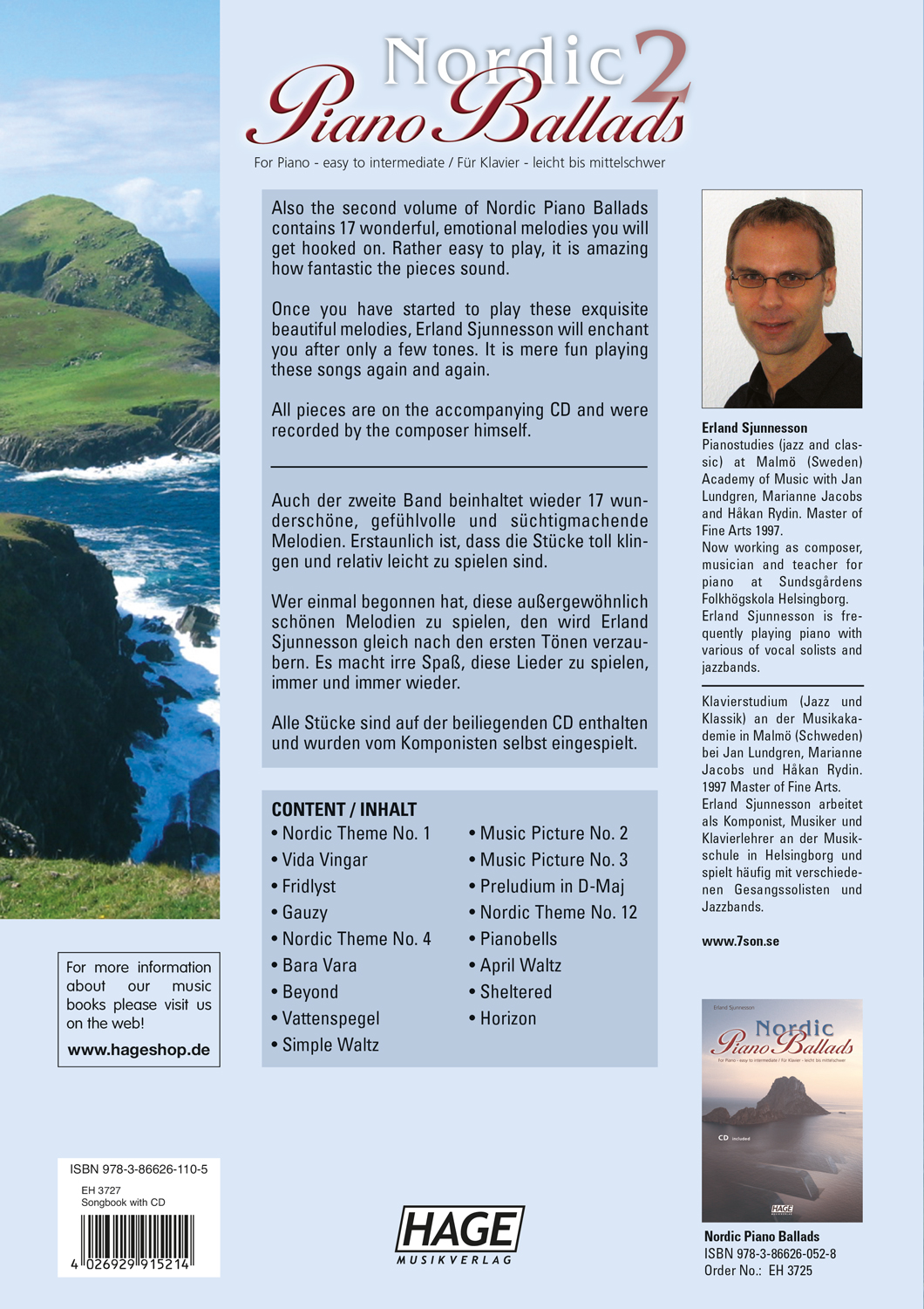 | Schlagworte | ballad • Klavier • Musikalien Rock/Pop/Jazz; Klavier/E-Piano • Nordic • Noten (Musik) • Sjunnesson |