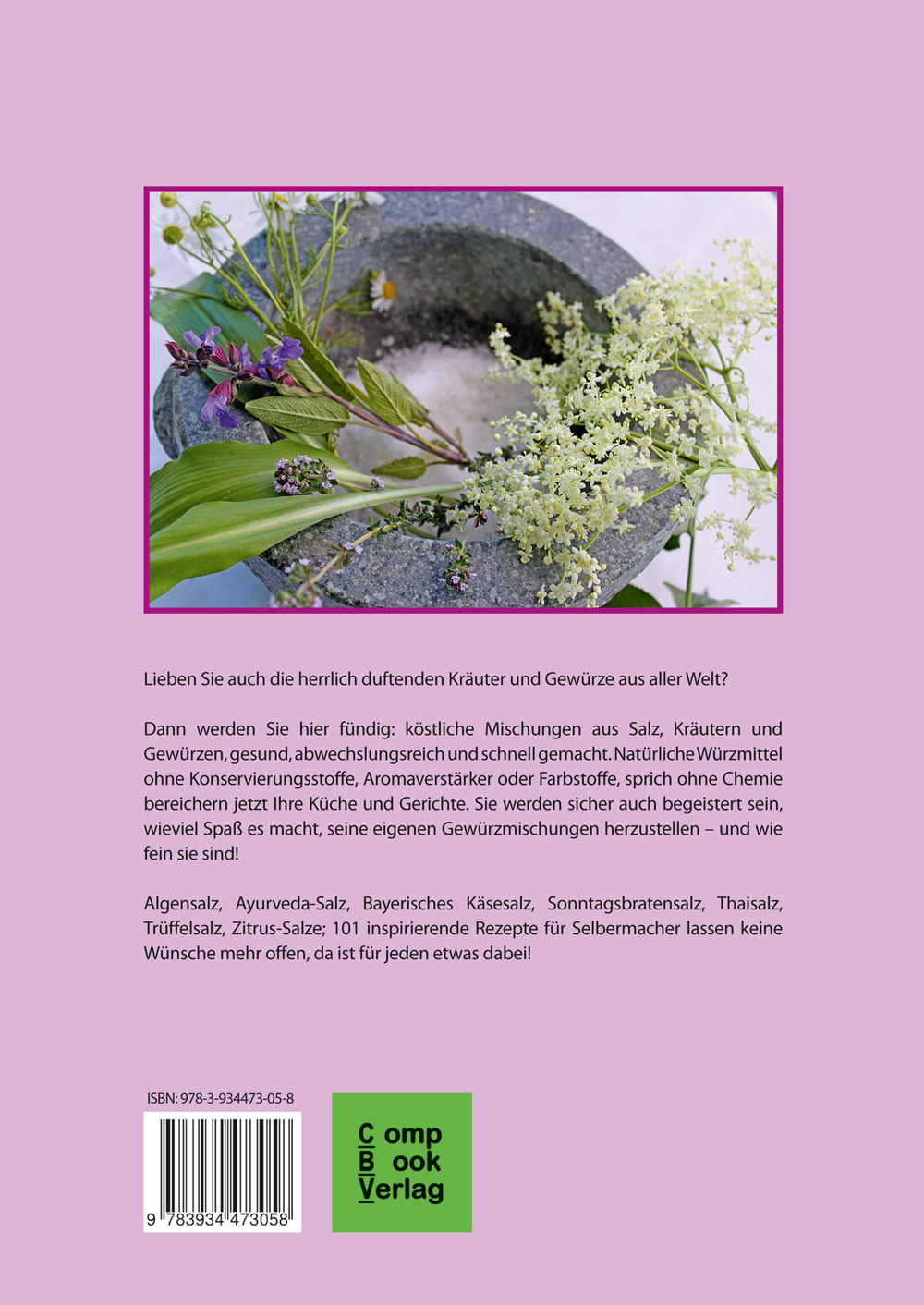 | Schlagworte | Chili-Zimt-Salz • Gewürz / Gewürzkräuter • Hildegardsalz • Hildegard von Bingen • Kochen: Gesundheit und Vollwertkost • Kochen mit Kräutern und Gewürzen • Kochen und Genießen • Kräuterküche • Kräutersalz • Rotwein-Chilisalz • Salz • Taschenbuch / Ratgeber/Essen, Trinken/Gesunde Küche, Schlanke Küche • Themenkochbuch • Tischsalz • Trüffelsalz • vegetarische Küche • Wildkräutersalz • Wild-Kräutersalz |