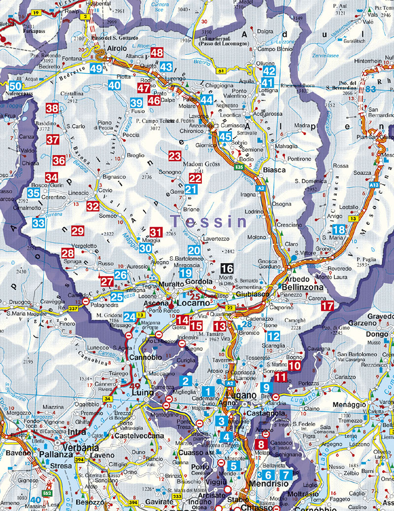 Rund um die Seen führen ausgedehnte Spaziergänge hinauf in die Alpregionen und zu fantastischen Aussichtsbalkonen. Zum breit gefächerten Tourenrepertoire gehören auch großzügige Höhenwanderungen und Ausflüge in die verschwiegenen Täler der nördlichen Tessiner Alpen. Auch eine mehrtägige Hüttentour durch das Tessin wird vorgestellt: Die dreitägige Wanderung auf der »Strada alta Leventina« ist eine der beliebtesten Weitwanderungen der Schweiz.