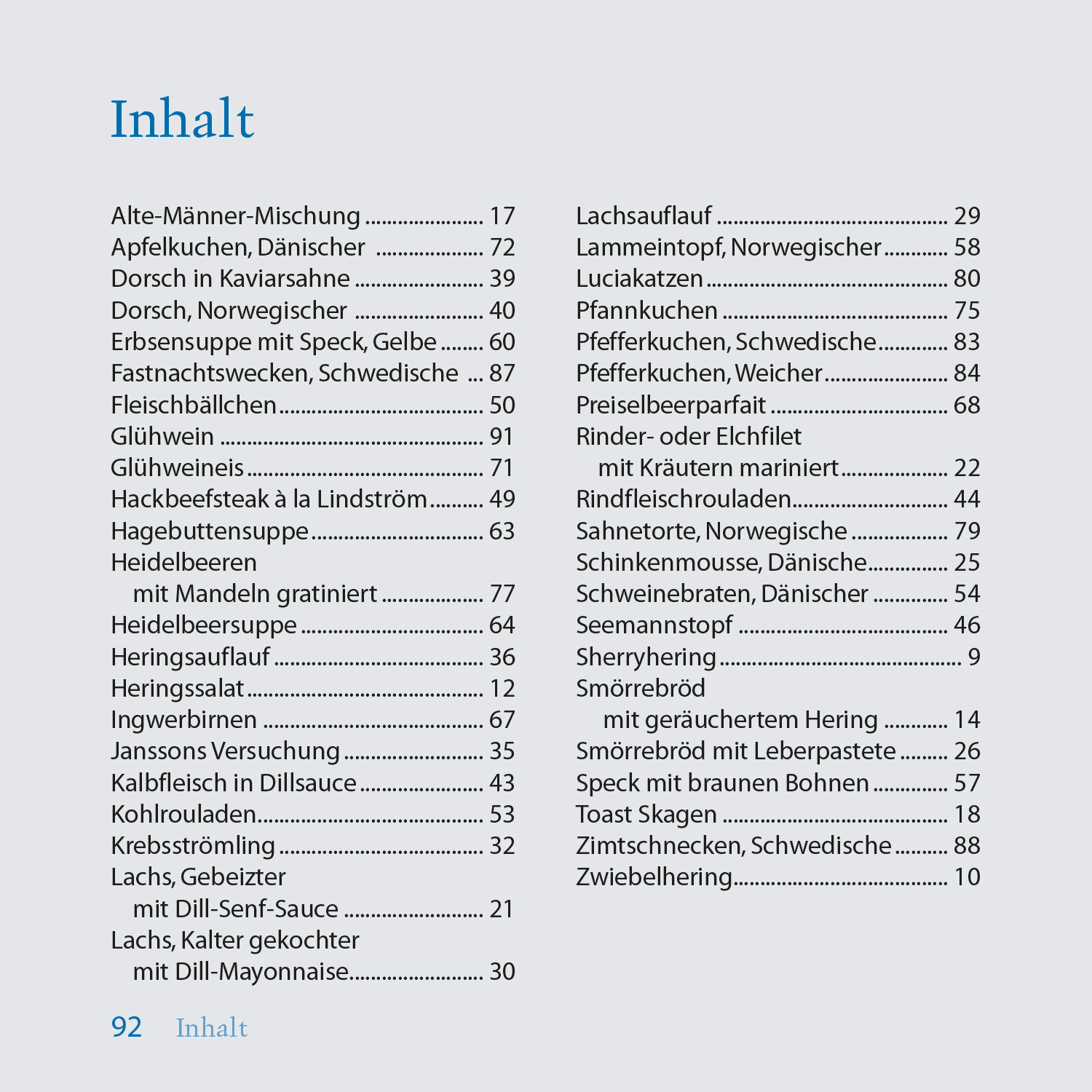 | Schlagworte | Dorsch, Norwegischer • Elchfilet • Fleischbällchen • Hagebuttensuppe • Hardcover, Softcover / Ratgeber/Essen, Trinken/Länderküchen • Heidelbeersuppe • Heringsauflauf • Kochen/Kochbuch; Skandinavien • Krebsströmling • Lachs, gebeizter • Lammeintopf, Norwegischer • Luciakatzen • Preiselbeerparfait • Schinkenmousse, Dänische • Sherryhering • Skandinavien; Küche • Smörrebröd • Toast Skagen • Zimtschnecken, Schwedische |