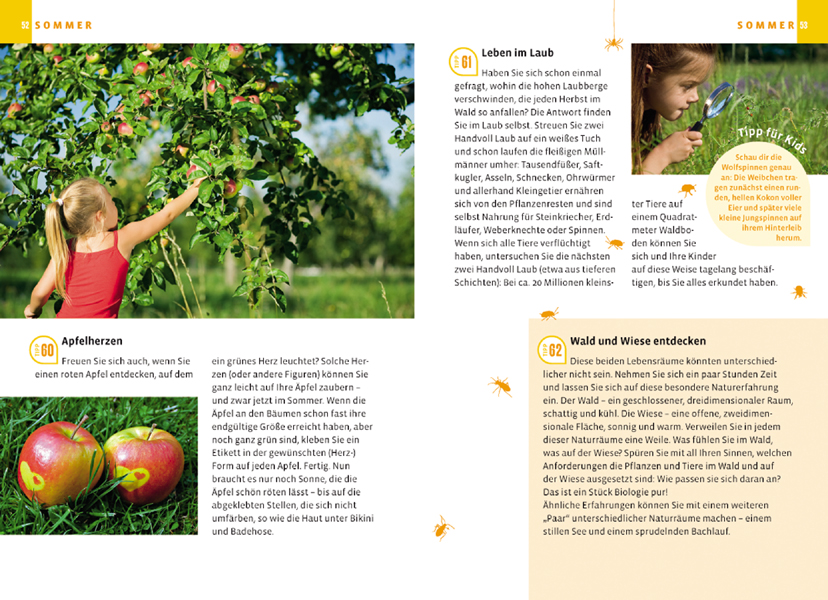 Wann haben Sie zuletzt unter freiem Himmel geschlafen, ein Froschkonzert besucht, mit Kindern am Bach gespielt oder duftenden Waldmeister für die Küche gesammelt? Blüten im Winter, die erste Schwalbe im Frühjahr, Fledermäuse in der Sommernacht und Pilze im Herbst - gleich vor der Haustür gibt es so viel zu entdecken! Die Natur bietet das ganze Jahr über und bei jedem Wetter Schönes, Spannendes und auch Leckeres.