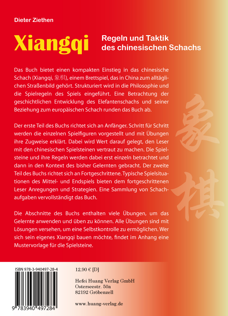 Ein kompakter Einstieg in das chinesische Elefantenschach: Strukturiert wird in die Geschichte, die Philosophie und die Spielregeln des Xiangqi eingeführt. Schritt für Schritt werden die einzelnen Spielfiguren vorgestellt und mit Übungen ihre Zugweise erklärt. Erfahrene Spieler finden Anregungen in Beispielen und Übungen zum Mittel- und Endspiel. Lösungen zu den Übungen erlauben eine Selbstkontrolle.