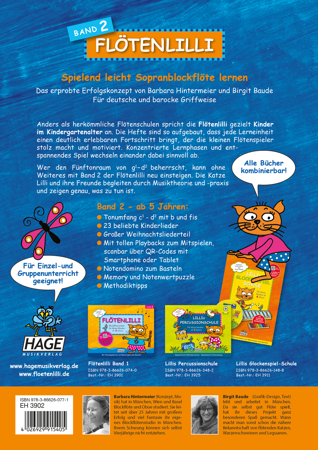 Wer den Fünftonraum von g1 - d2 beherrscht, kann ohne Weiteres mit Band 2 der Flötenlilli neu einsteigen. Die Katze Lilli und ihre Freunde begleiten durch Musiktheorie und -praxis und zeigen genau, was zu tun ist.
