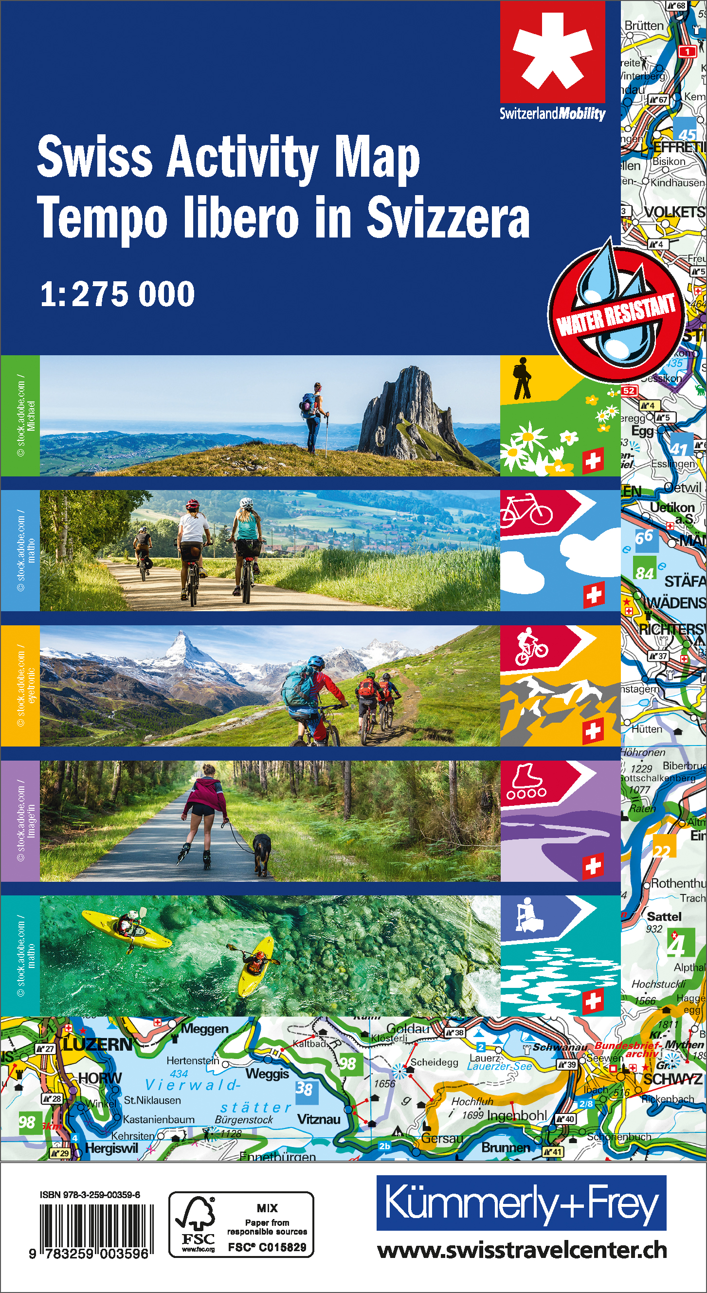 Format 12,3 x 23 cm, offen: 135,3 x 92 mm. 4-sprachige Legende d/f/i/e. Wasser- und reissfest.