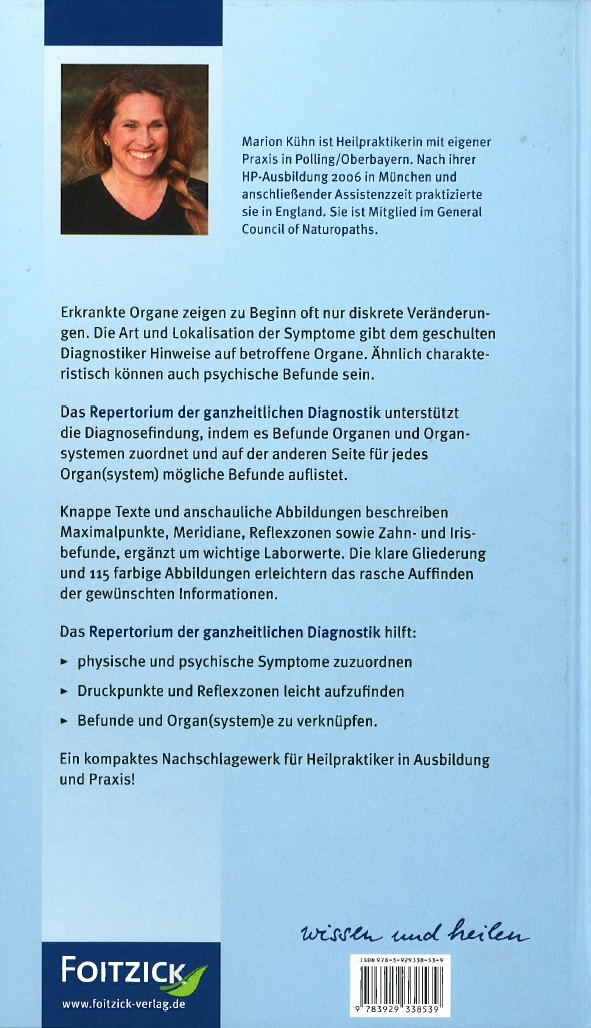 Das Repertorium der ganzheitlichen Diagnostik unterstützt die Diagnosefindung, indem es Befunde Organen und Organsystemen zuordnet und auf der anderen Seite für jedes Organ(system) mögliche Befunde auflistet.