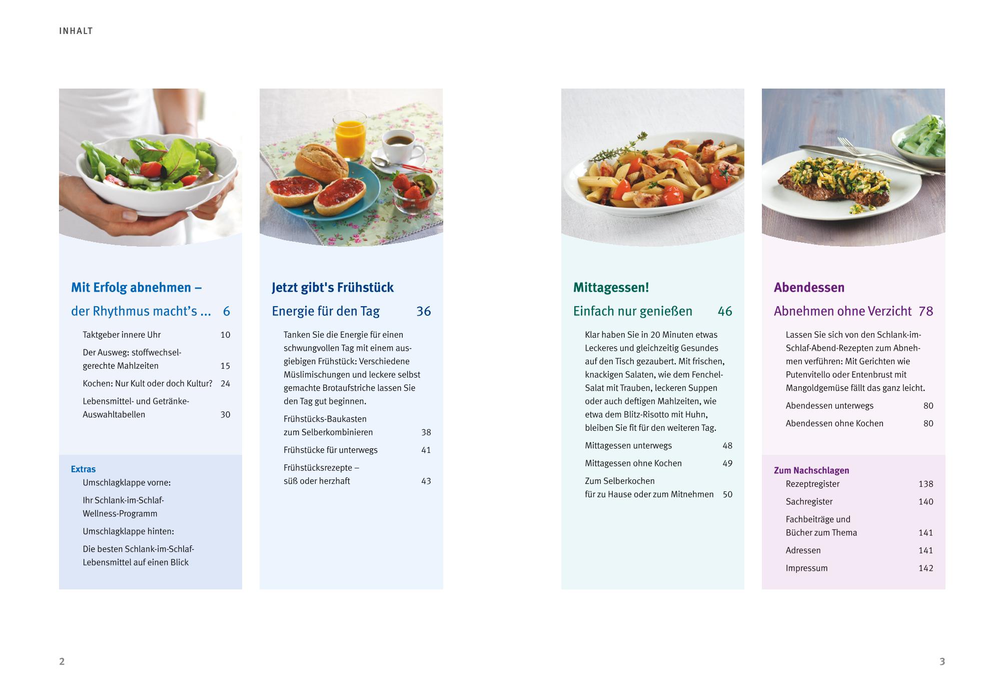 Das Frühstück können Sie sich wieder mit dem praktischen Baukasten nach Lust und Laune zusammenstellen. Für mittags und abends gibt es die die schnellen, abwechslungsreichen Rezepte zum Sattessen. Natürlich haben wir für alle die viel reisen auch hier wieder Tipps eingebaut, wie man mit fertig gekauften Lebensmitteln perfekt nach dem SiS-Prinzip essen kann. In der vorderen Klappe erfahren Sie Neues zum SiS-Wellness- und Bewegungs-Programm und in der hinteren Klappe gibt es eine Übersicht über die besten SiS-Lebensmittel. Insgesamt wieder ein Rundum-Wohlfühl-Paket zum erfolgreichen Abnehmen.