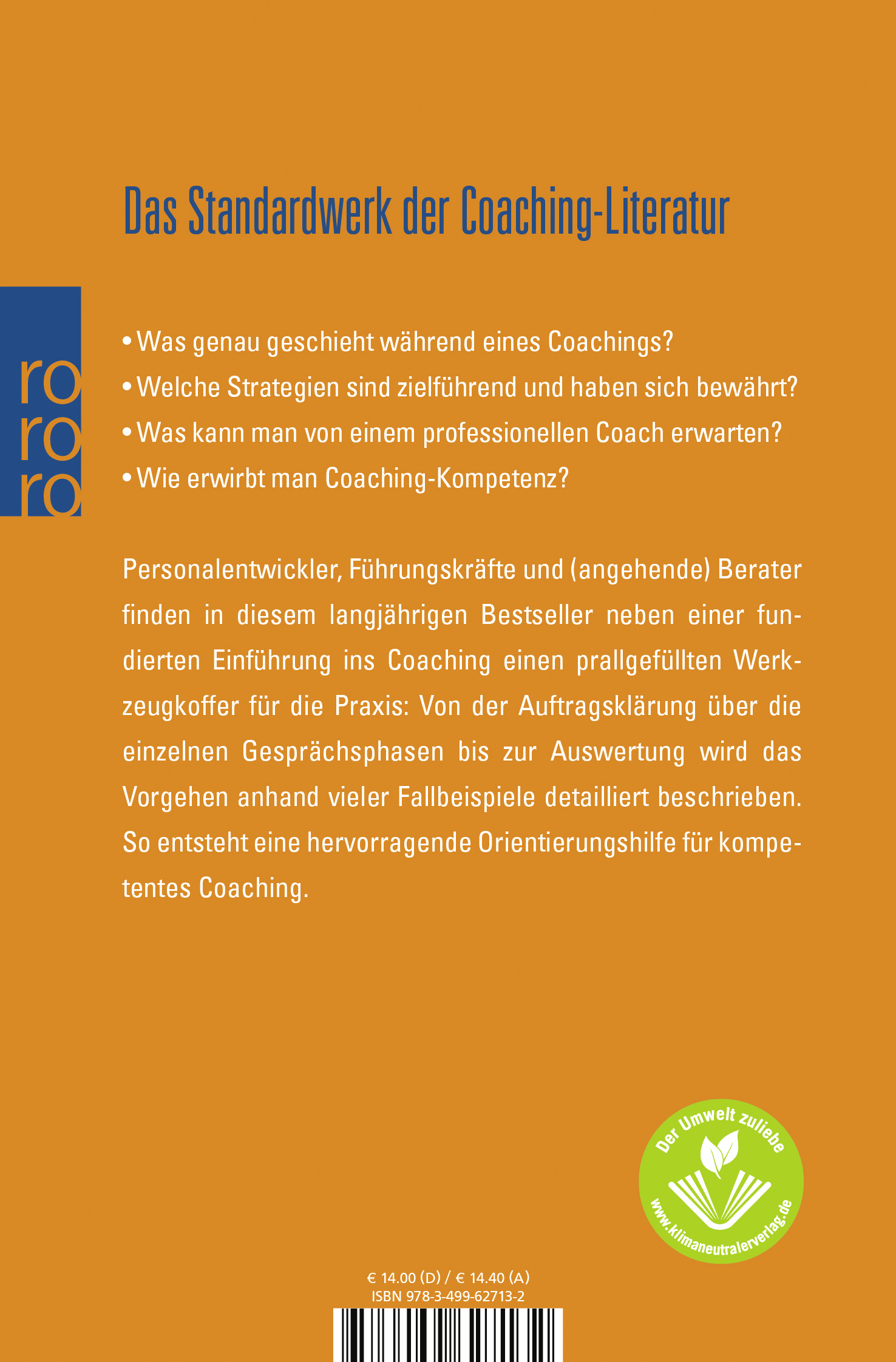 Für diese Ausgabe ist der gesamte Text redaktionell überarbeitet und wiederkehrenden Leserwünschen Rechnung getragen worden. Der Kern des Coaching ist jedoch über die Jahre hinweg derselbe geblieben: Ein gutes Coaching- Gespräch begleitet den Coachee bei der Suche nach stimmigen Zielen und Lösungen. Es fördert Kontextverständnis, Rollenklarheit, Selbstreflexion und Selbstverantwortung. Hier erfährt der Leser, was innerhalb eines Coachings geschieht, welche Strategien sich bewährt haben und wie man Coaching- Kompetenz erwirbt.