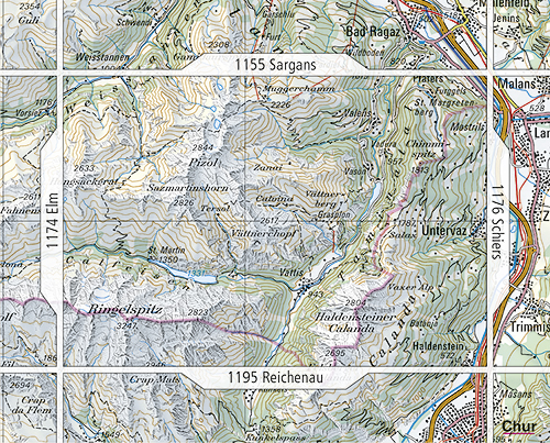 | Schlagworte | 1175 • Calanda • Calfeisen • Pizol • Ringelspitz • Untervaz • Vättis • Vättis (Umgebung), Karte; Wanderkarte • Vättis (Umgebung); Wanderkarten • Zanaihorn |