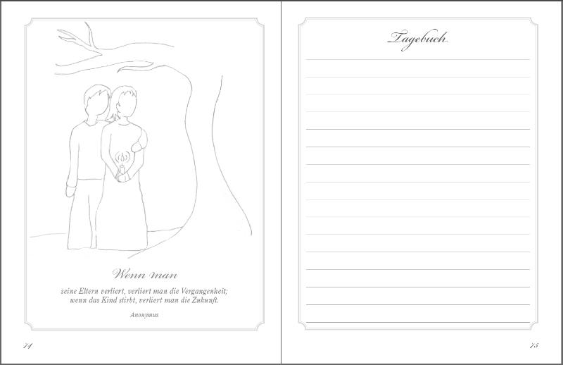 | Schlagworte | Abort • Album • Beerdigung • Bestattung • Brief • Erinnerung • Erinnerungsalbum • Fehlgeburt • Folgeschwangerschaft • Fotoalbum • Frühgeburt • Geburt • Geburtstag • Gedenkbuch • Gedenken • Jahrestag • Neugeborenentod • Schwangerschaft • SIDS • Stammbaum • Sternenkind • stille Geburt • Tagebuch • Tod • Totgeburt • Trauer • Trauerarbeit • Trauerbewältigung • Ultraschall • verwaiste Eltern |