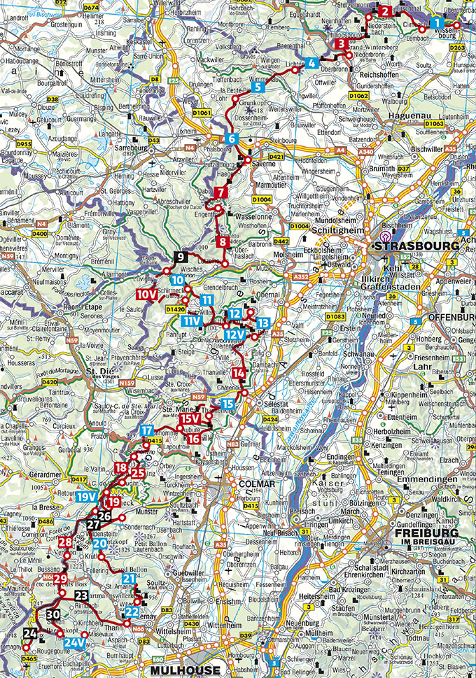 Auf den GR 53 und 5 von Wissembourg nach Belfort. 36 Etappen. Mit GPS-Tracks