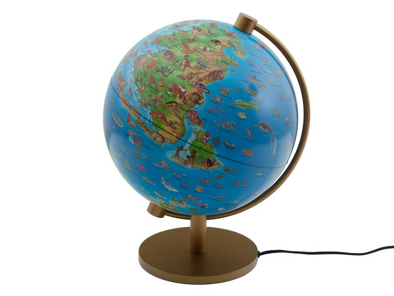 Illustrierter Globus der prähistorischen Welt, mit Begleitheft, beleuchtet