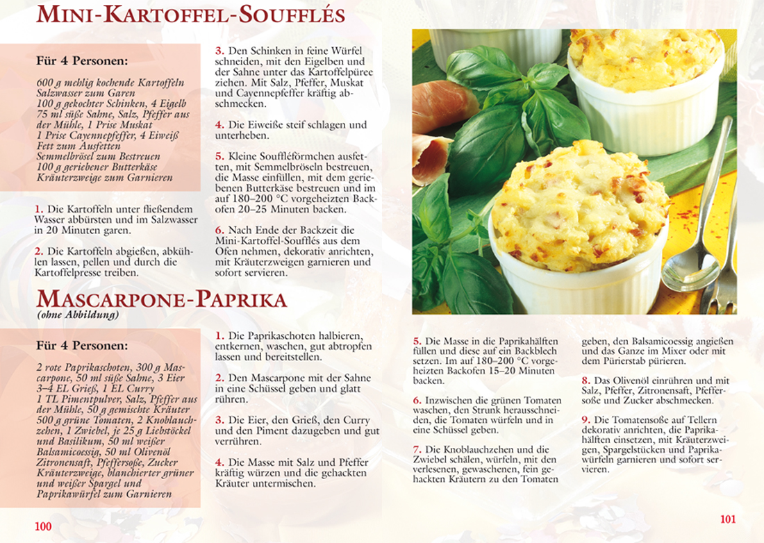 Alle 100 Rezepte in diesem Band sind übersichtlich zusammengestellt, durchgehend mit farbigen Abbildungen versehen und Schritt für Schritt erklärt.