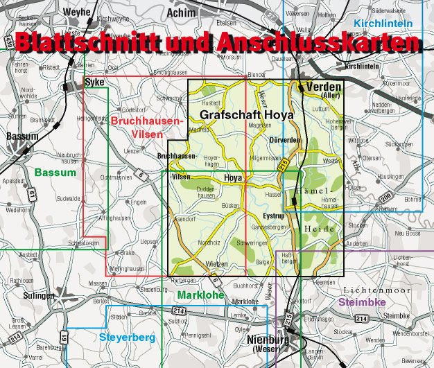 | Schlagworte | Auto • Fahrrad • Freizeit • Hoya (Grafschaft) • Hoya, Karte; Stadtplan • Hoya; Stadtplan • Hoya (Umgebung), Karte; Radkarte • Hoya (Umgebung), Karte; Wanderkarte • Hoya (Umgebung); Radkarte • Hoya (Umgebung); Wanderkarte • Kultur • Mittelweser • Niedersachsen • Nordic-Walking • Radwandern • Sport |