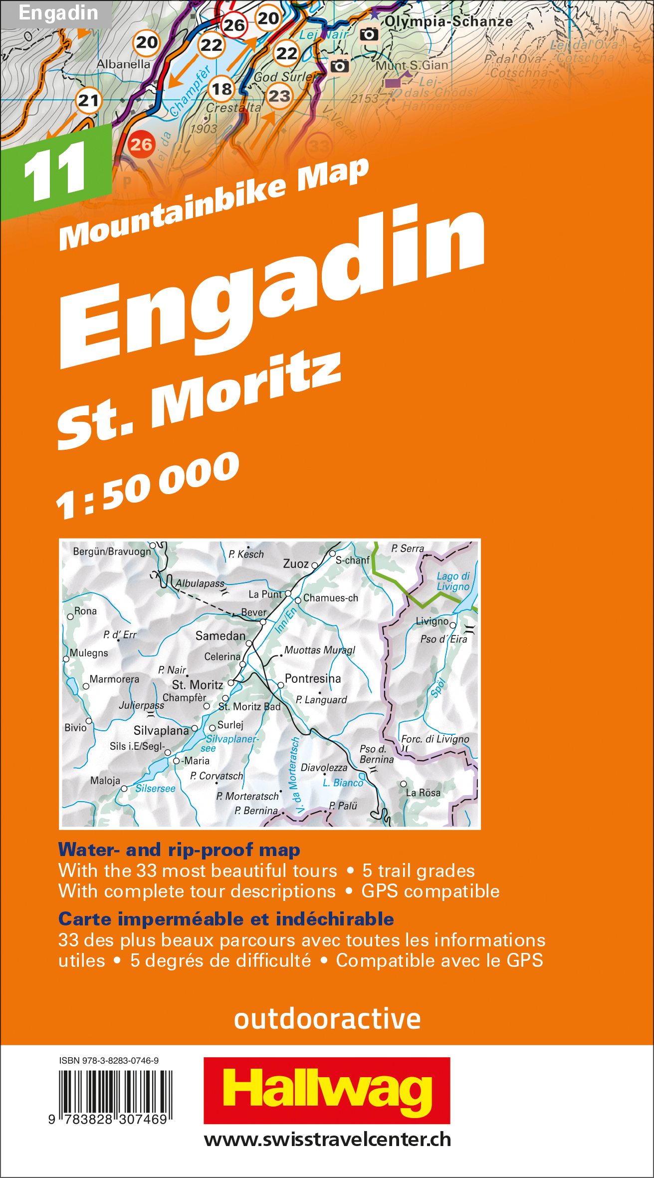 Hallwag Mountainbike-Karte 11 Engadin 1:50.000