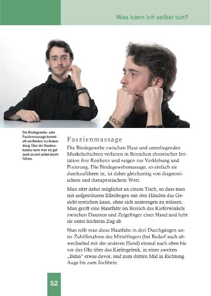 Jedoch wird auch klar unterschieden von anderen Fehlfunktionen, die ihren Ursprung nicht im Kausystem haben. Dabei werden auch emotionelle Störungen nicht ausgeklammert. Hier wie dort werden Betroffenen Tipps gegeben, wie sie sich helfen können, sei es ein Patient mit Beschwerden, oder ein Arzt oder Zahnarzt, der mit seinen therapeutischen Möglichkeiten auf Grenzen gestoßen ist.