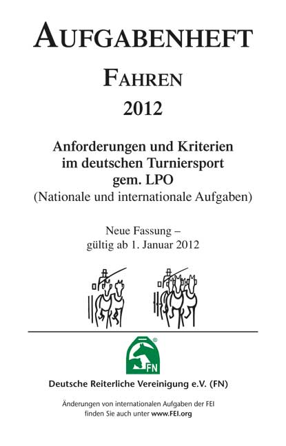 Die Ausgabe – Fahren – des Aufgabenheftes enthält neben den nationalen und internationalen Fahraufgaben zusätzlich Standardparcours für Stilhindernisfahren und Beschreibungen zu den einzelnen Prüfungsarten.