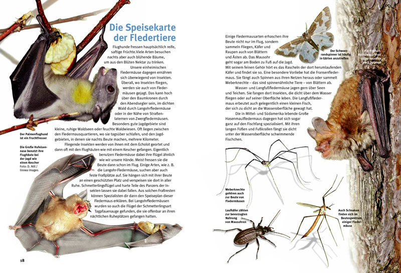 InhaltWillkommen in der Welt der Fledermäuse und Flughunde!Mäuse mit Flügeln und fliegenden Hunde?Geister der NachtDie geheimnisvollen Sinne der FledertiereSie Speisekarte der FledertiereFledermaushochzeit und WochenstubenWenn der Winter kommt.Fledertiere beobachten und erforschenGefahren für FledertiereWir helfen FledermäusenExtra: FledermausquizNützliche Adressen