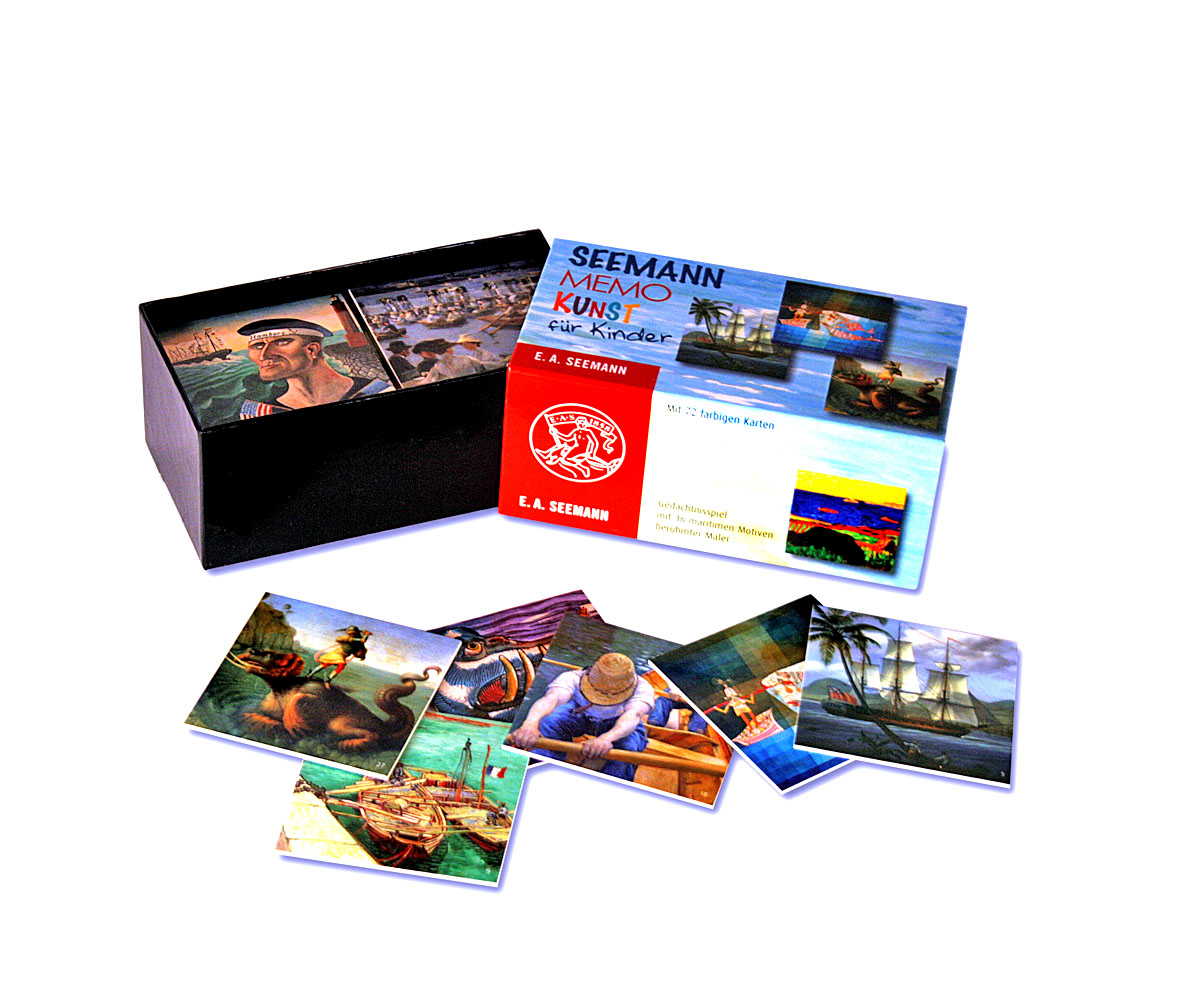 Sieg in Sicht! - Die Motive dieses Gedächtnisspiels laden zu einem maritimen Abenteuer ein. Sie zeigen Kapitäne, Fischer mit ihren Netzen, gefährliche Piraten, Meeresungeheuer, kleine Ruderboote, alte Kähne, Häfen und Strände, Gondolieri und Sonnenuntergänge. Es sind Details aus Werken berühmter Künstler, die man während des Spiels aufdecken und sich merken muss. Das "Eismeer" Caspar David Friedrichs, die Venedig-Ansichten Canalettos, die pointillistischen Bilder Paul Signacs, aber auch farbenfrohe, filigrane Wand- und Buchmalereien aus Indien und anderen fernen Ländern sind dabei. Diese unterhaltsame Schiffstour über die Weltmeere ist für die ganzen Familie ein großer Spaß: für kleine und große Seemänner, angehende Kunstkenner - und Landratten werden dabei garantiert nicht nass.