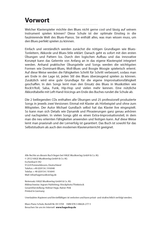 | Schlagworte | Blues • Bluesgitarre • Klavier • Musikalien Rock/Pop/Jazz; Klavier/E-Piano (Schulen) • Noten (Musik) • Piano |