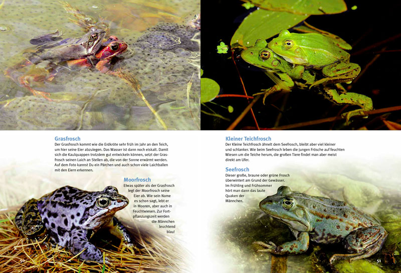 Einen Frosch, der in seinem Teich herumschwimmt und munter quakt, oder den schwarz-gelben Feuersalamander kennt jedes Kind. Aber wie leben diese sympathischen Tiere? Was fressen sie, wie überstehen sie den Winter? Wie wird aus einer Kaulquappe ein kleiner Frosch? Und welche anderen erstaunlichen Amphibien gibt es?