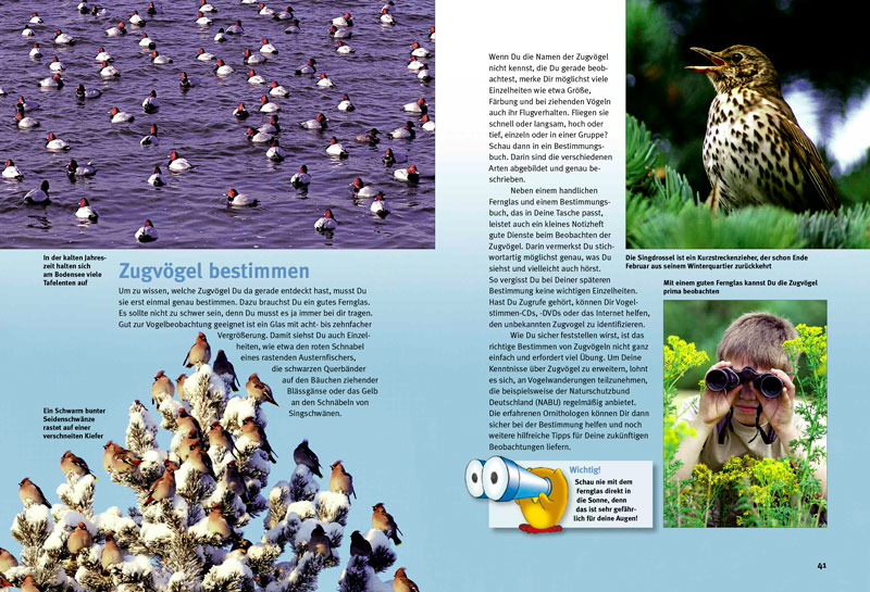 Der Hamburger Thomas Schmidt ist Biologe und hat schon mehrere Kindersachbücher über Vögel geschrieben. Jedes Jahr im Herbst beobachtet er zusammen mit anderen Vogelkundlern den Zug der Vögel über die Elbe. An manchen Tagen überfliegen Tausende von Tauben, Drosseln und Finken den Fluss in Richtung Süden: ein faszinierendes Erlebnis!